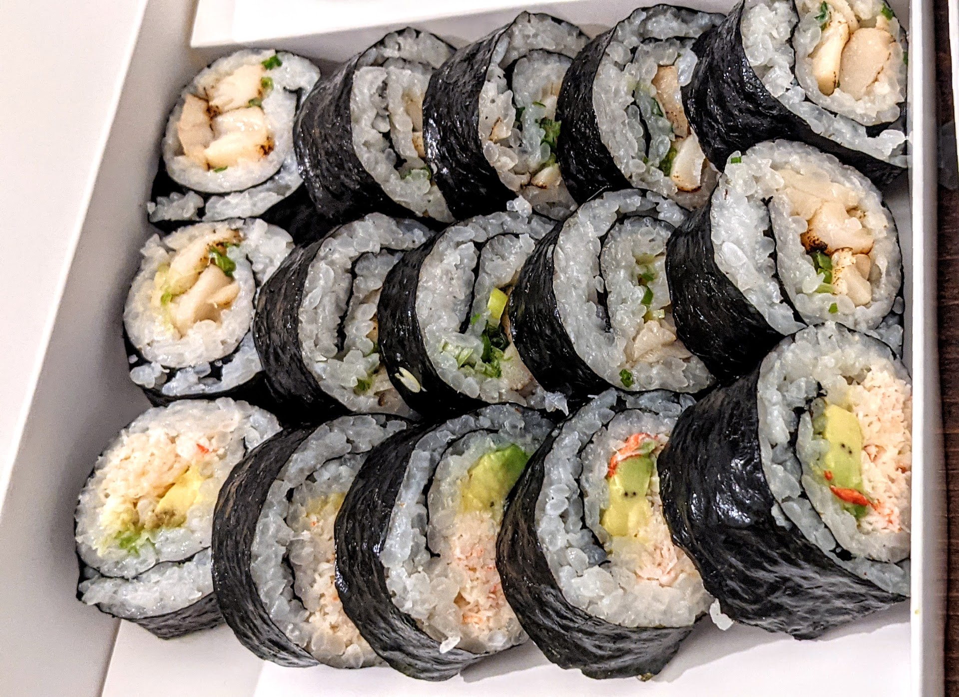 Not that I am a sushi chef but these rolls were cut crooked and in varying sizes vs symmetrical like you would normally find "traditional" rolls