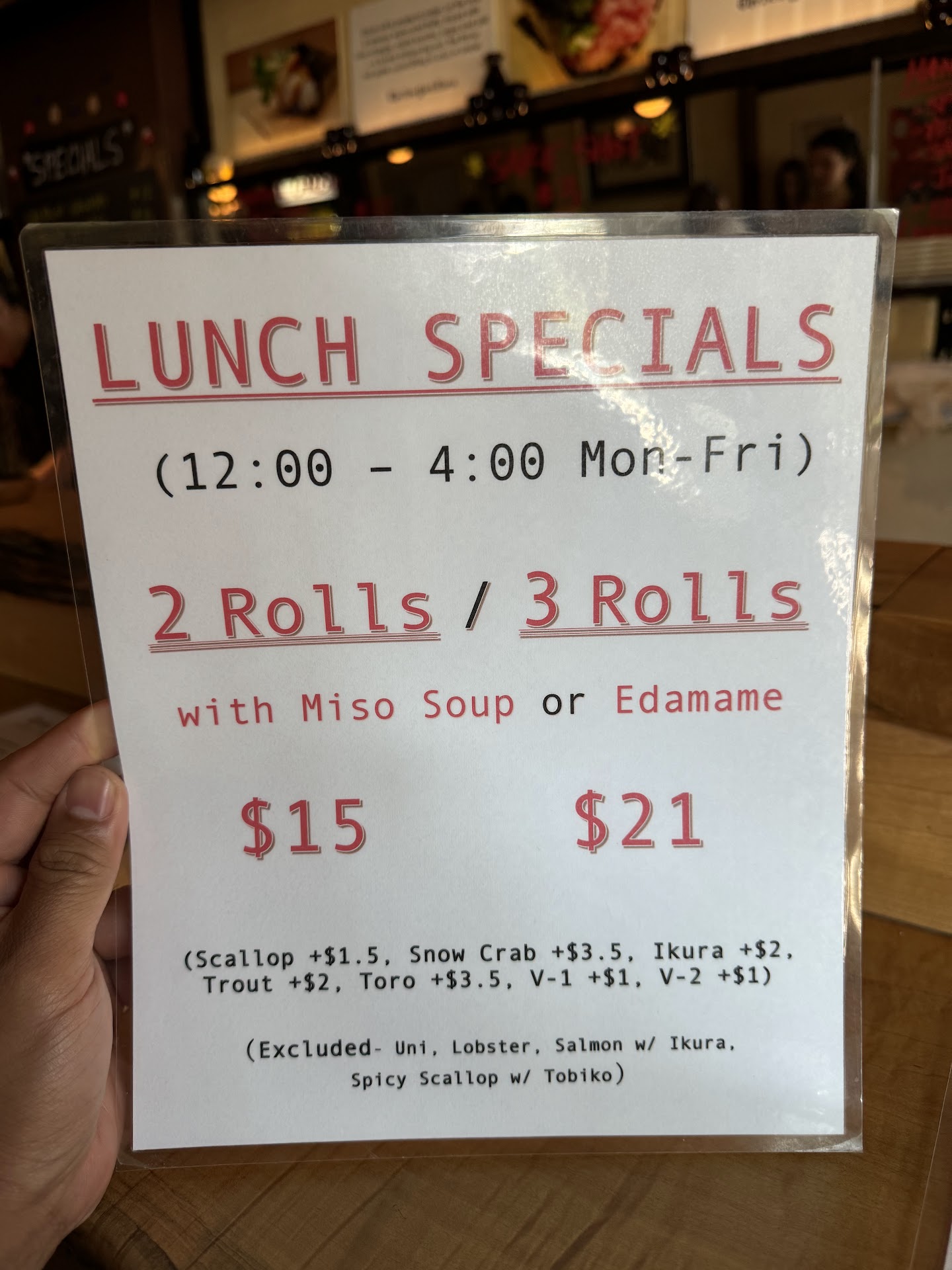 I wish they marked on the menu what wasn't included in the lunch or what had add ONS but it was listed on the 8.5x11 that caught my attention on the door.