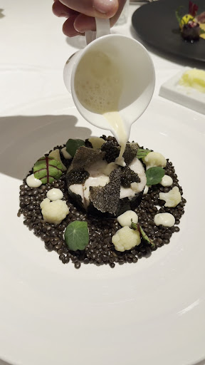 Black Cod: Served with caviar and beluga lentils. The texture of the fish was tender and cooked well, though slightly bland.