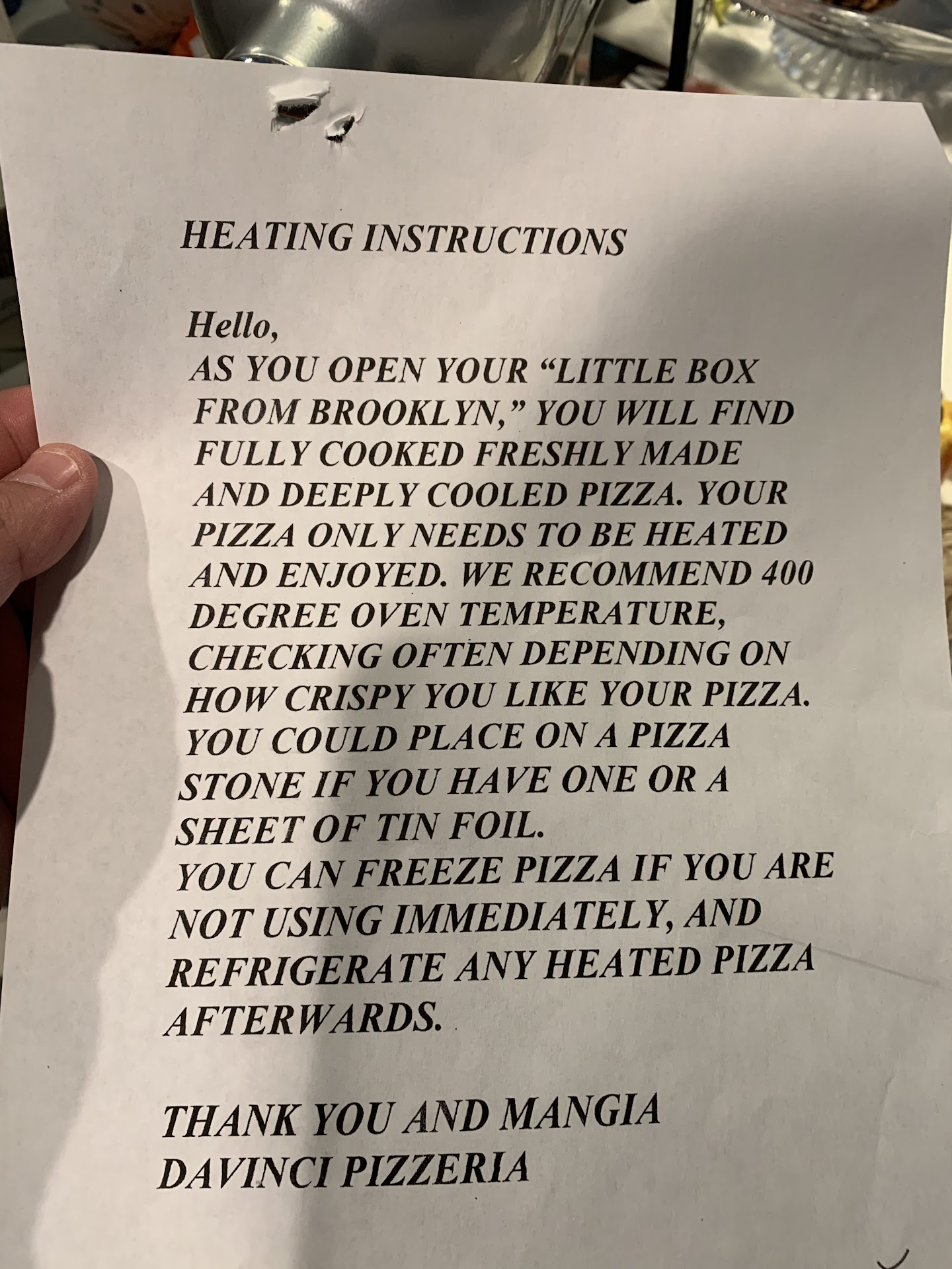 I used to live in Brooklyn, Davinci was up the block from my house and ate there very often. My favorite pizza in all of NY. Moved to Indiana in 2003 and have never been back to Brooklyn since. We don’t have good pizza out here at all, not even in surrounding states. Was seeing if the store was still there and came across there website that said they shipped pizza!!!! I about lost my mind and made an order that same day. Ordered my beloved Sicilian and a round pie. It was next day aired to me, and boy oh boy, did it bring me back. I was too excited, as was my family and I forgot to get a picture of the round pie. Needless to say, it was incredible. I think the price is fair, and will consider it as a night out once a month from now on. Cheaper than a trip to New York. My only suggestion is to ask for extra sauce at checkout in the request box, most of the sauce dried out but it was still a 10/10 for me. My kids have never had New York pizza and now they understand why I think dominos and Pizza Hut are disgusting LOL. Nothing comes close to NY Pizza!!! Will be ordering again in 2 weeks! Also have been chatting through texts with the owner, he gave me updates about my order and was so friendly. What a great guy. You can’t beat that kind of service. So happy that I now know shipping is an option....