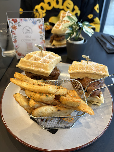 Okay so I found this place on TikTok. Walked in @459pm sat down , nobody came up to us until 522pm. Place is but so big was only 4 couples in the cafe including me and my partner. After finally being greeted we knew what we wanted since waiting that long. We both order chicken and waffles- with fries and home fries. Both ordered drinks âice tea & orange juiceâ after he took our order Iâm assuming the manager is who came up to the table to inform us he doesnât have any of the two beverages we asked for. âI donât drink nothing else on menu thatâs why ordered OJ.â We both went with water because he couldnât accommodate any drinks close to what we asked for. Fast forward we waited another 20 minutes for food no issue with that. Food came out and looked very good but the food was TERRIBLE. I paid about 55$ for two orders of chicken and Waffle and water. The chicken is really bad in my opinion as well as my partner. They didnât inform us we would have some type of sauce on the chicken which threw the entire meal off. Waffles completely dry besides they two bottom layers which was completely soaked in the sauce from chicken which is completely nasty I couldnât even eat it. I ate just the top two waffles. My fries was COMPLETELY over seasoned. My throat was burning with how much seasoning was put on the fries. The service from staff was okay I donât think they know how to properly attend to the customers. I was very disappointed in the entire experience and didnât want to be rude so I paid and left without even eating anything on that plate besides the two top waffles. I drove 2hrs and 12min to ...