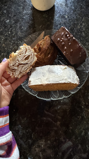 Went there on my way to work cause I live nearby and always pass…looked like a nice place. It’s very clean and well decorated. I ordered a large oat milk caramel latte and was offered an extra shot of espresso. The way it was offered suggested it was complimentary…it was not…they charged me $1.00 without telling me…and another dollar for the caramel…and .75 for the use of oatmilk…7.75 That’s my regular coffee order nearly every day and I very rarely pay over $6…and if i do, it’s usually delicious. The latte tasted pretty bad and burnt and the oat milk wasn’t foamed at all but was unusually hot. I also ordered a bacon, egg, & cheese on a roll which was sitting out in the open and room temperature but they heated it up in the back for me so I guess that’s good? It tasted pretty good but like…it’s bacon, a dippy egg, & cheese on a toasted brioche bun…pretty hard to mess that up. And it cost $9! Order came to $18.24! For a bad, surprise-fee coffee and a sandwich that was sitting out! The pastries there look low key delicious but alas with that experience and their prices I don’t think I will be returning...