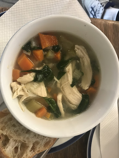 All the baked goods looked attractive and delicious. There were good selection of sandwiches and soups. My husband had a tasty Alaskan smoked salmon sandwich with whole wheat bread. I had chicken vegetables soup and a vegan mushroom parsnip soup. The cafe used all fresh and high quality ingredients. The mushroom soup was umami. I also bought one to take home. The chicken soup was very good and tasted homemade.