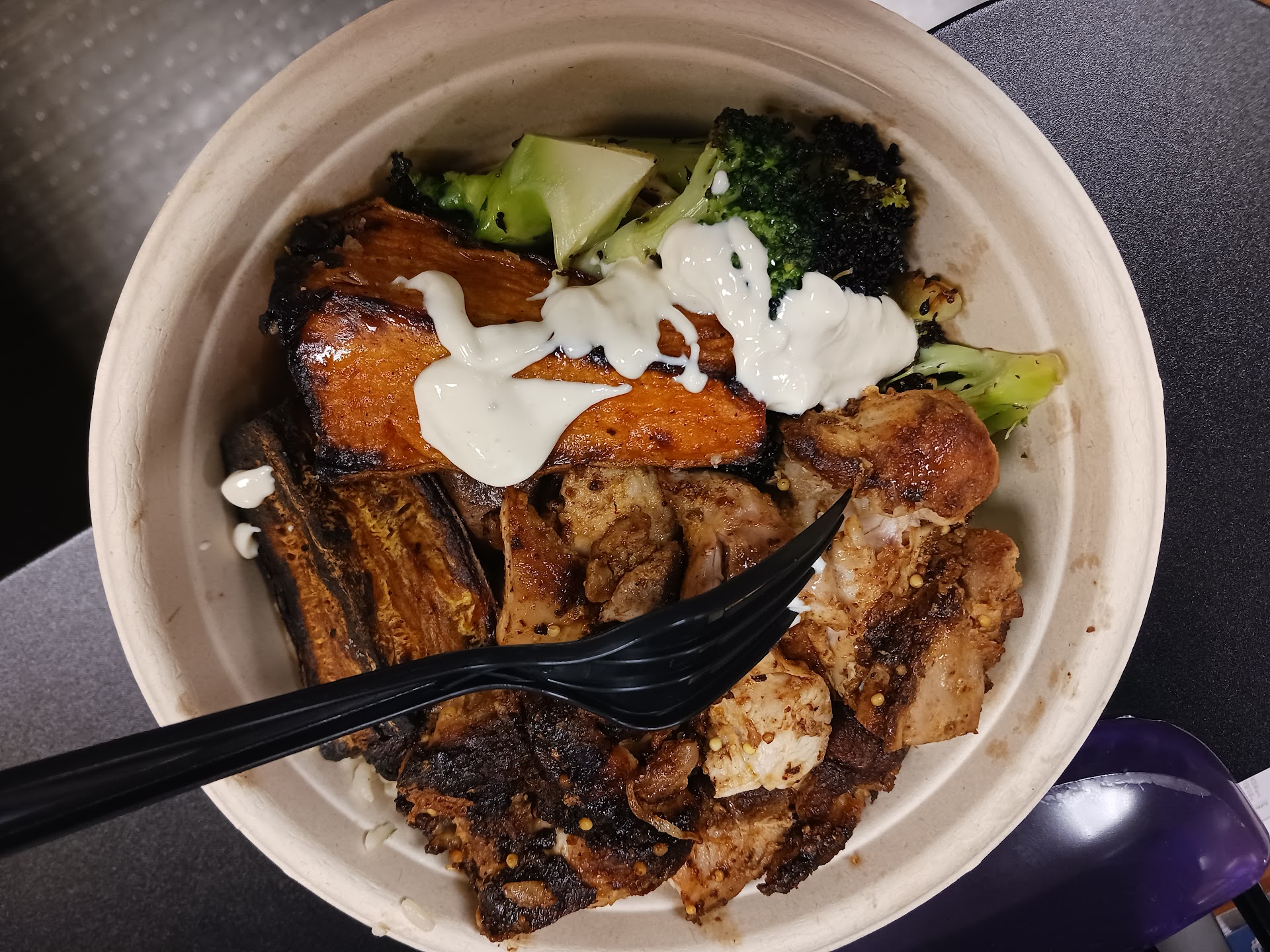 Read moreA solid build-your-bowl place. Reading their mission on the site tells you they're focused on unpretentious food. This much is true. They feature staples in cookery that one sees at home, not something super unique or gimmicky. And, from how it tastes, it all works. They have a small range of options for proteins, about four. There's about 5 vegetable sides you can choose from, 2 grain bases, multiple cold salads, and Mac and cheese. I usually get the classic, which is chicken, rice, broccoli, and sweet potato. It's an unassuming bowl of food but it is very well made. The potatoes are charred and sweet. Broccoli is also charred with lemon. Chicken isn't dry and has a good spice flavoring. The rice is a bit gritty. They also offer a limited selection of desserts. Their chocolate chip cookies are very good, with some texture and plenty of chocolate chips. They offer a variety of sauces for each bowl you build. I personally think you can't go wrong with the garlic aioli, unless you don't like garlic. Dig is a solid spot overall for lunch and it offers good flavor for the price. Their foods are also pretty hearty so a bowl will last you a good amount. I started coming weekly and will probably...