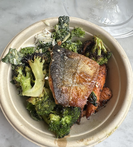 I visited dig inn on Sunday it was my first time eating at the chain. I was enthusiastic and let the person at the counter know it was my first time. She pretty much did nothing to welcome or help, and I stood at the counter confused trying to figure out how their system works etc. I opted for greens, broccoli, chicken thighs, and sweet potatoes. I wanted a glass of wine and the cashier had no clue what was available. But finally she pointed to the wall menu, I had the only red from Gotham City. The food was bland, the chicken thighs were a far cry from charred, and the potatoes while nicely seasoned were a tad undercooked. The best part of the plate were the greens and I was left wishing I had put together a salad instead. But I had not seen any salad type offering in the buffet spread. So I shrugged my shoulders and continued eating my meal
