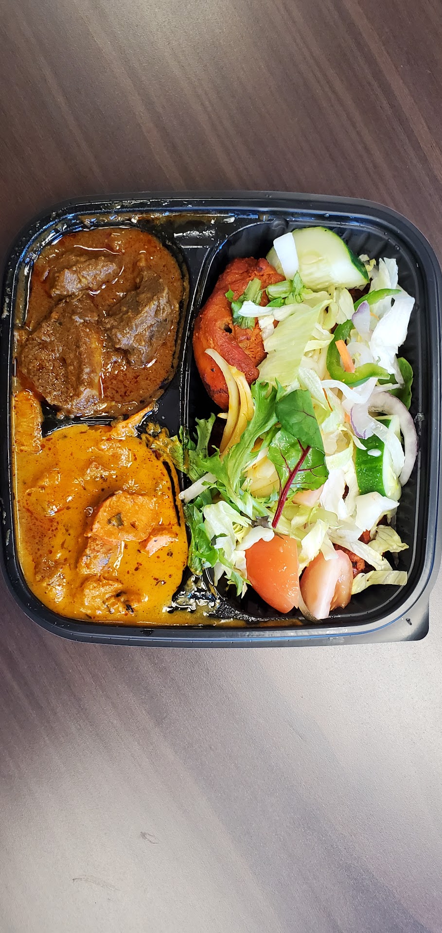 Regardless, the food was okay. The vegetable samosas were probably my favorite part, nicely crispy without being too fried and the chutneys were nice. Good size and price. Opted for the saagwala, which really was just fine. It's described as being creamy but it isn't so much creamy as more mushy. The portion is robust, including the amount of meat, which makes up for the price (albeit this price is pretty standard for Indian food in the area). The meat itself was fairly chewy and could have been a bit more tender. And there was a good amount of fatty pieces that I didn't love. Was torn between ordering naan and malabar parotta. Ultimately went with the latter and regretted it. It was probably made fine but I really didn't think it added anything to the meal in the way that naan would have- so this may just be my bias rather than the restaurant.