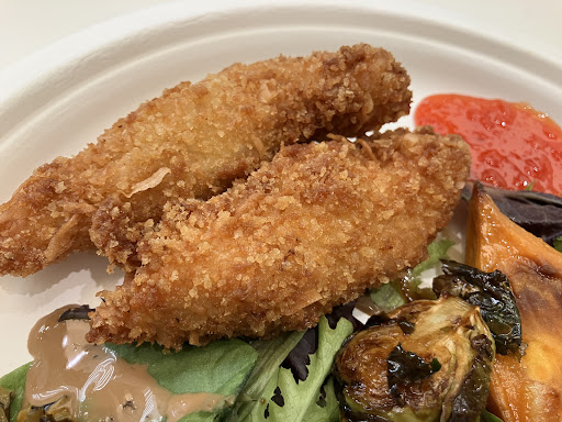 Read moreCoconut Crusted Chicken Fingers. Orange Roasted Sweet Potatoes. These two looked so attractive in this upscale salad bar. Dishes, family owned, is located on 45th Street between Madison and Fifth Avenues. I knew this place but never went in. All salad bars weigh the box or plate so if one takes heavy goods it is going to cost more. Take judiciously. Now in two weeks I have eaten here twice. Frequented by office personnel who take out but others stay in to eat. Like I did. Both the chicken and sweet potatoes were delicious. I also took some greens, rice salad and other foods. Then on the second visit after I ate, I filled a box with four chicken pieces and another with sweet potatoes to eat at home. I also bought two cookies: flourless chocolate for Age and a chocolate chip one for myself. No doubt this is a fairly pricey place with fancy offerings like crab cakes but it is tasty and worth every penny. Dishes is a clean salad bar with music and a pretty restroom with muted chartreuse green walls similar to the walls in the interior. All the employees were professional and friendly. I can't...