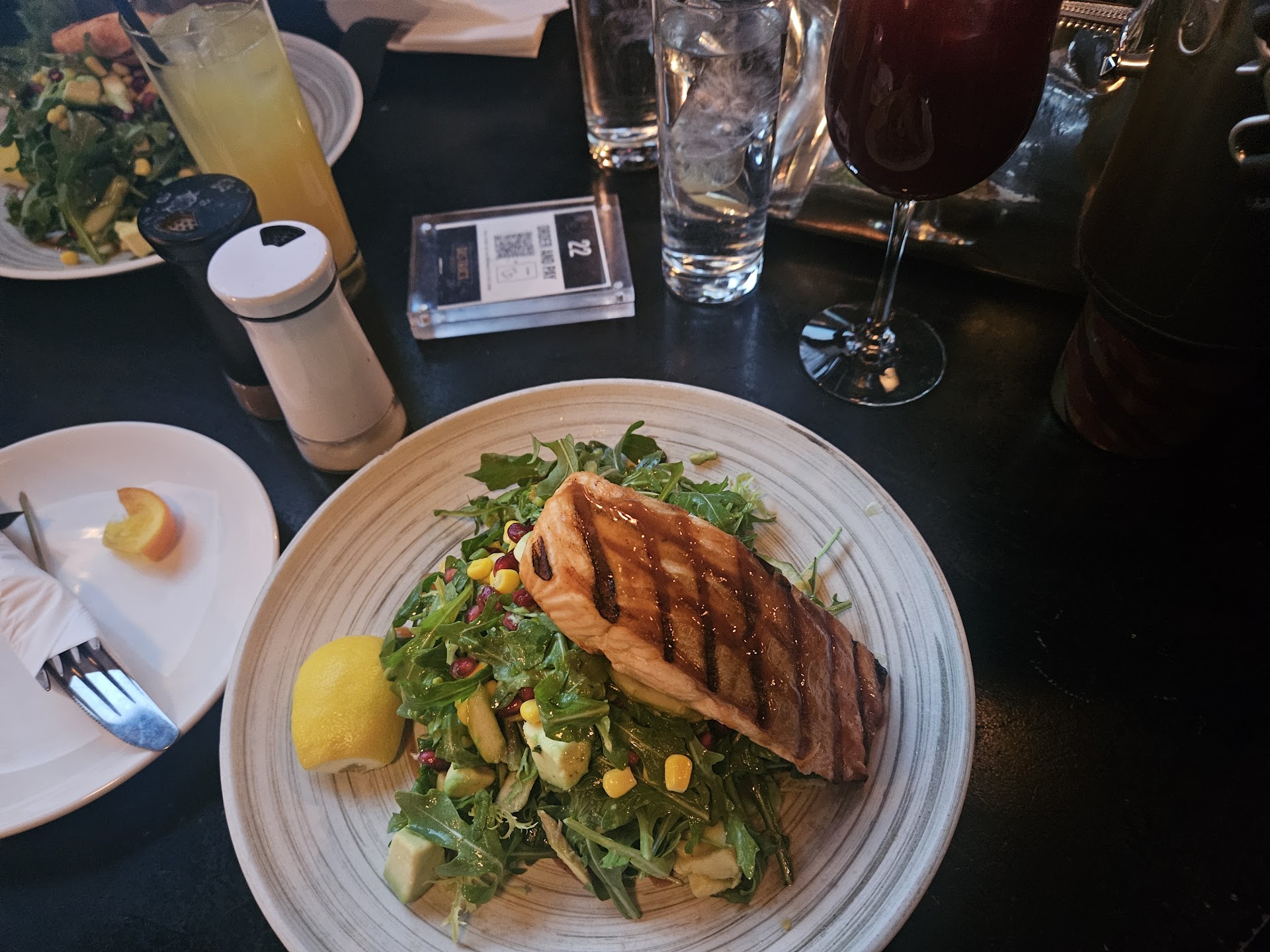 Read moreSo I had a Sangria which was perfectly mixed for my drink. It was fruity delicious "creeper" Of a drink. I definitely would order it again. As for food we ordered the grilled salmon which can with the perfect blend of fresh and delicious vegetables that had a splash of vinegar. The salmon had the perfect crisp to it and in every bite there was so much avocado chunks. Our waiter checked on us multiple times which made us feel like our comfort was a priority. The ambiance was also very relaxing and easy on the eyes. I would definitely recommend this location to anyone looking for great food,...
