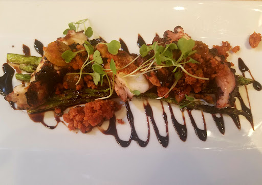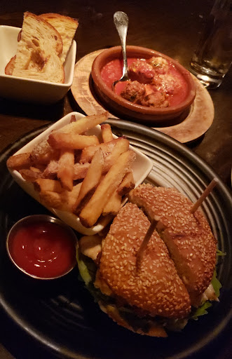First, I would like to take the time to acknowledge the staff's professional presence. I had a new girl training, but that did not effect her promptness and knowledge. The only mistake she made was that she let us order the Szechaun Pepper hot wings without a warning LOL! Apparently these are only available during Beer Week so we figured why the hell not?? Beer and wings is never a bad choice. These wings, however, were about 9 out of 10 HOT HOT HOT! We weren't about to sissy out so we asked for some blue cheese (apparently not stocked in this restaurant) but they did go out of their way to get us some ranch instead to cool it down. The bartender at the main bar came over and introduced himself and apologized for the wings - normally they give an honest warning but the new girl was not aware since it is only a Beer Week menu item). Like i said, no biggie, but the attention to us was appreciated. We also ordered the goat cheese croquettes and duck fat fries. The croquettes were delicious and fried perfectly. We are from Miami so it takes a lot to give a croquette a stamp of approval. The accompanying pepper honey sauce only made them more delectable. Duck fat fries - I mean what is there to say?? DUCK.FAT.FRIES = party in your mouth!