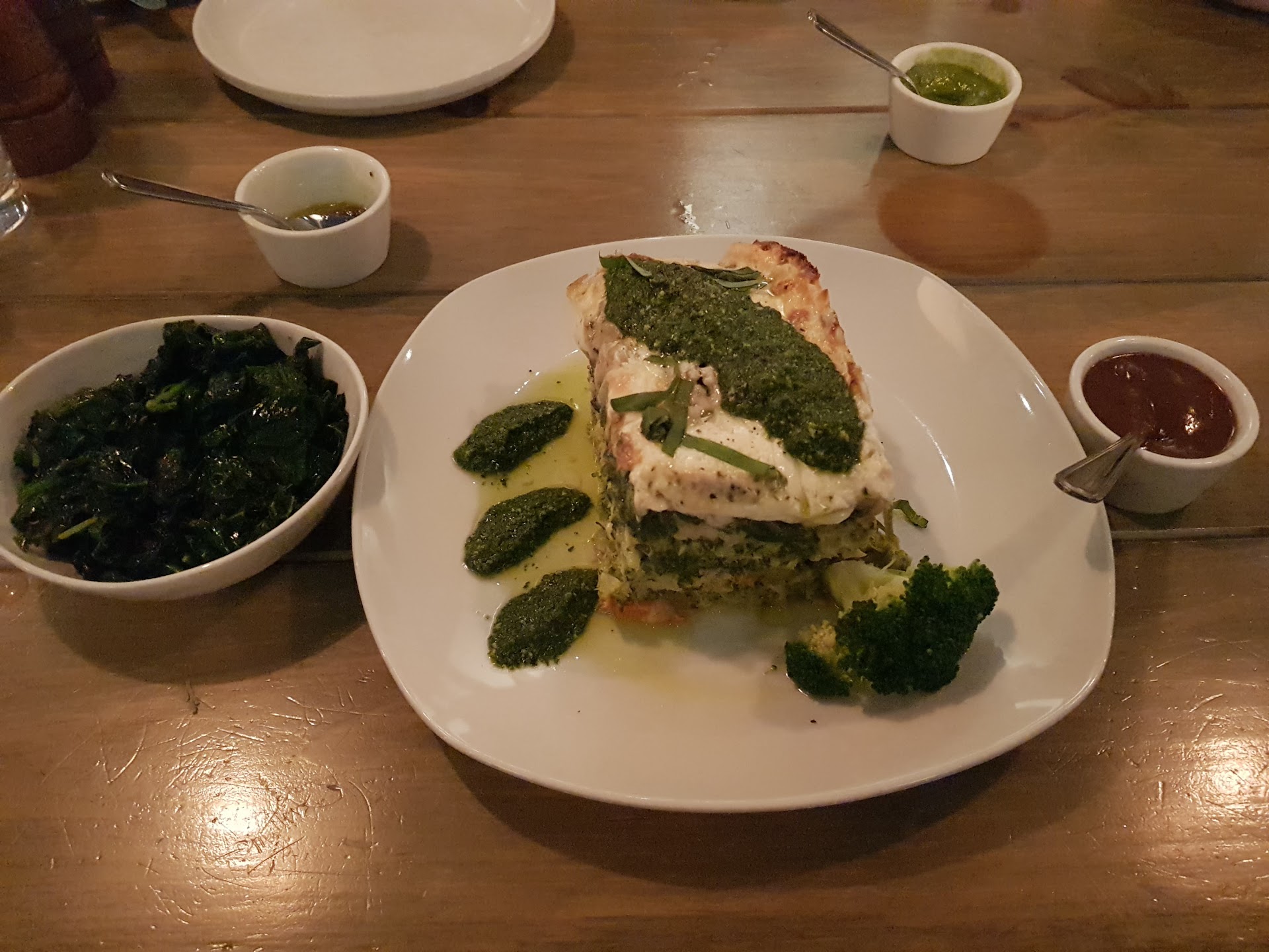 Main course: Lasagna - A very different-in-a-good-way dish, had layers of vegetables (carrots and broccoli), pasta, cheese, and pesto sauce. I have already tried this lasagna a few months ago, and I liked it better back then. The `leafy-green' add-on for $6 is over-priced, bland, given in a separate cup, and I'm not sure why they offer it with the lasagna.