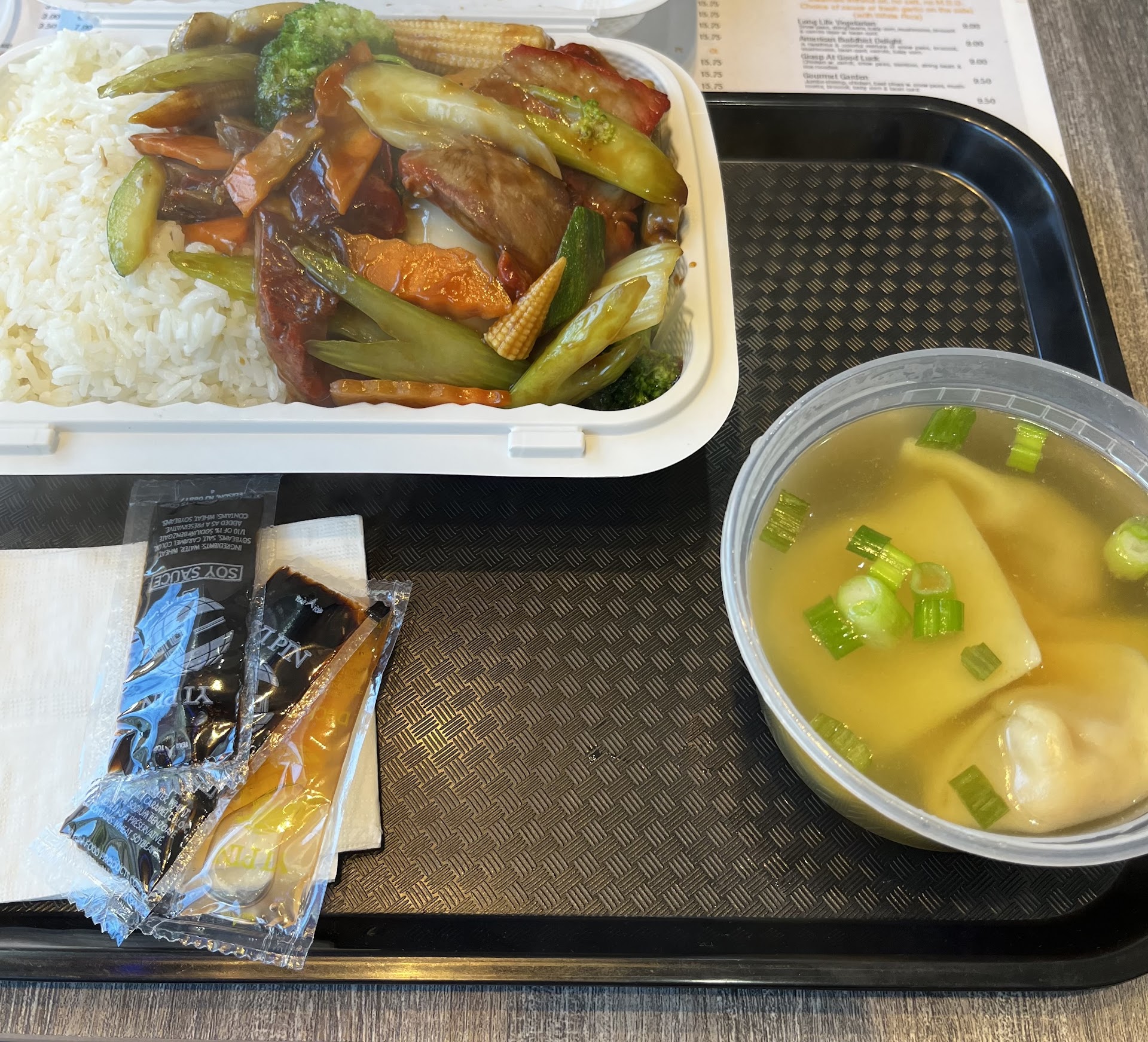Read moreThe lunch specials are a bargain. The portions are large and the ingredients seem to be fresh. Unfortunately the soup with wontons is boring and of low quality. My main course (pork with veggies) tasted okay, but not great. It’s mainly a takeout/ delivery kitchen, but there are two tables if you feel like having to eat at...