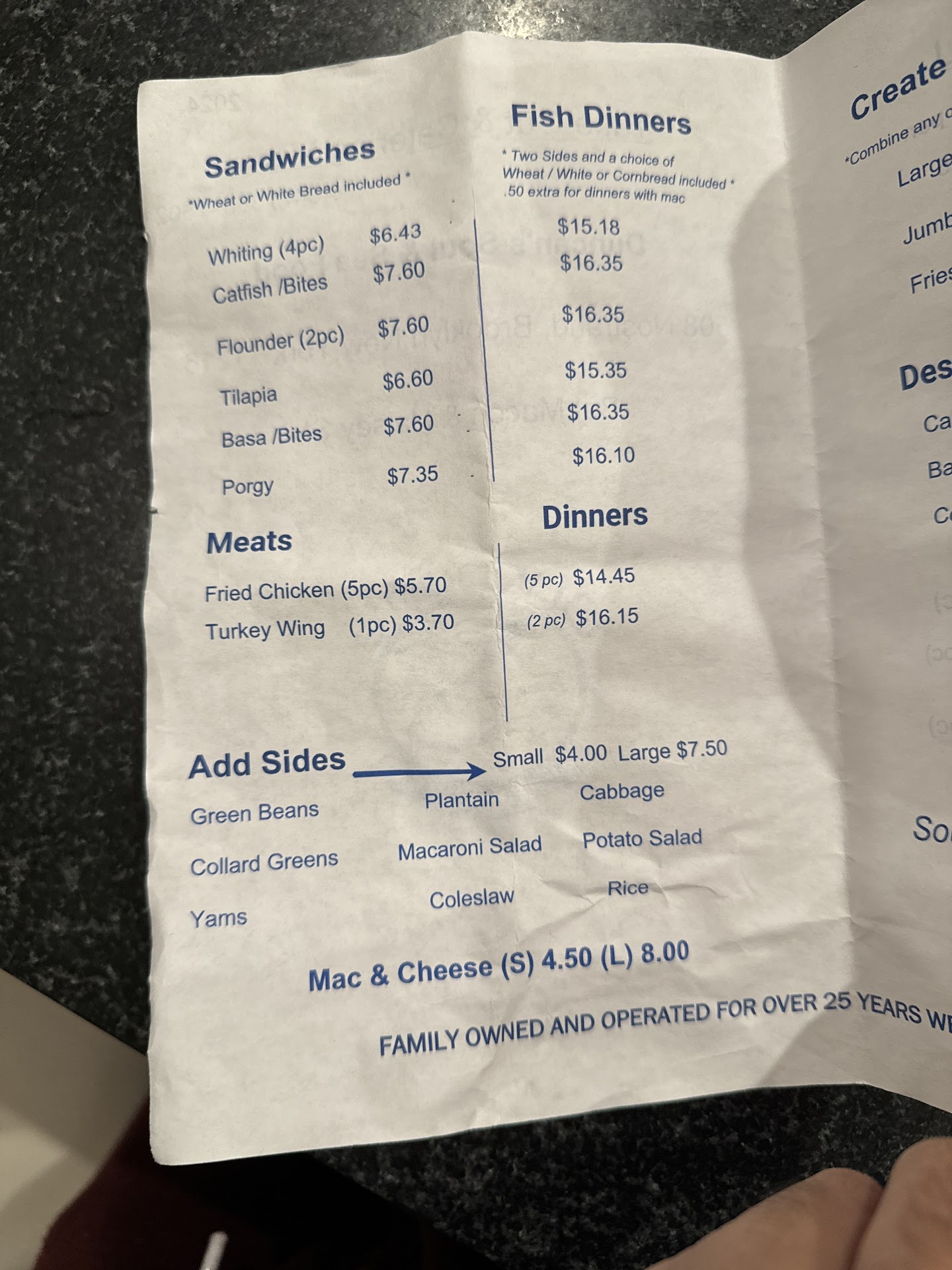 Small Black owned restaurant was a plus for me. We Enjoyed the meals, Will definitely visit again and support them.