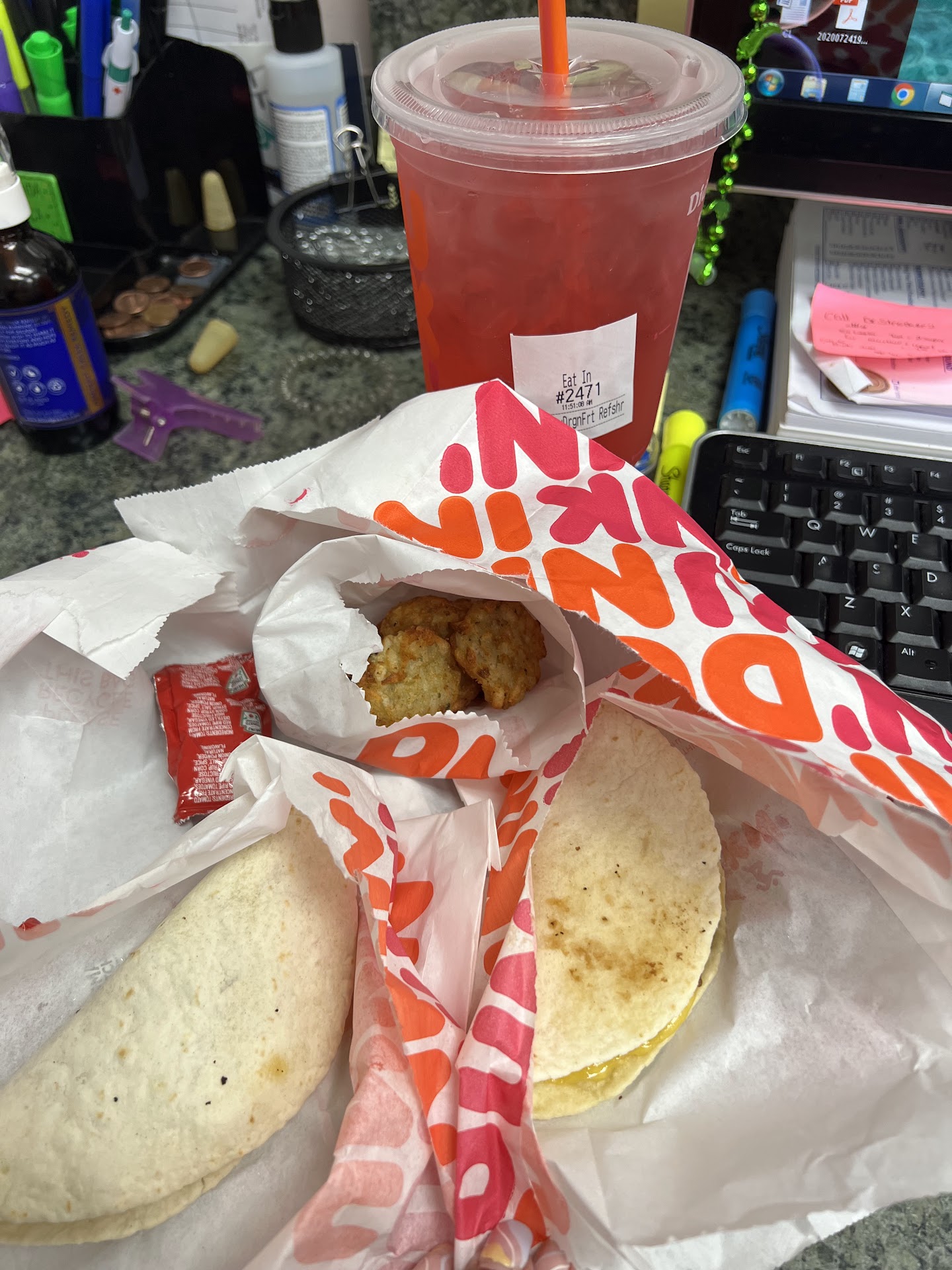 A few feet from my hair salon comes in very handy! I always order on the app so I rarely come in contact with the employees but I do enjoy getting free beverages and if I want something extra the employees always make sure to get it right! One thing I didn’t like and was disappointed by was their munchkin glazed donuts. I had gotten them on a Saturday early afternoon & they weren’t fresh at all! Made me wanna just stick with getting my usual breakfast wrap & hash browns! I definitely suggest getting a Strawberry dragon fruit beverage with extra strawberry dragon fruit! At times the ice dilutes the sweetness so extra is usually needed! The location is in a great area and is hardly ever busy which is good for me but I def. suggest using the app so you can just...