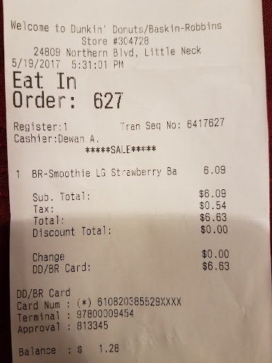 This is the second time I'm leaving a bad comment about this particular Dunkin Donuts. (Last time they made my order wrong 3 times in one visit!) I came in wish to get strawberry banana smoothie for my kids using the free beverage which I was always able to do and this time was told no. The staff told me free beverage is for Dunkin product only and the drink I want is from Baskin robbins. I informed him that this is not the first time I redeem smoothie as a free beverage and ask him to scan my phone, and it didn't scan. So I thought maybe policy changed so I paid for it. I was wondering why he charged me over $6 when the drink is only $4.99 on the board, but by that time I was holding up the line and at the same time trying to control my kids not to run around and disturb other customers in the store so I figured it's ringed up by the computer it must be right. I ignored the problem. After coming home, my husband told me that "oh, you were tricked, there is a Dunkin version of the smoothie and they're not telling you about it, I had to ask them to change it to Dunkin version last time because they tried the same thing with me." I was so shocked! How stingy! They were holding up the line to avoid giving me a free smoothie! Unbelievable! Bad business practice! And the worse thing was that he wasn't the only server there knew I had the problem and no one spoke up! Please please please don't go to that place, they don't deserve a dime from customers! I don't normally rate business because my dad was a restaurant owner and I knew how difficult it was to run a business. But for my dad, the customer always came first, which is not the case in this one! I felt strongly responsible for avoiding another victim falling into their preying hands! This is just unacceptable. Anyone else having the similar experience visiting this store please speak up!