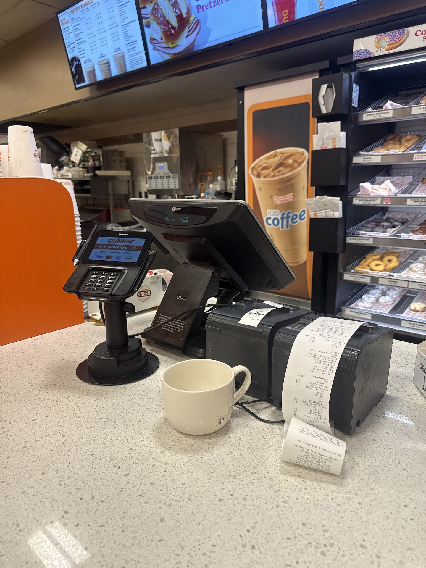 very DISAPPOINTED with this Dunkin. I simply wanted a Large Black ICE coffee with crushed ICE!!!! Guess who just lost my $225.00 a MONTH!!!!!! in addition to my friend who rides with me so over $450.00 a month. and now I will advise another friend and she also buys once a day. The manager will not feel it in her pocket but the owner and franchise will!!!! So I've been a long time customer who rides with a friend every morning and evening to buy our coffees. I recently discovered that I love my Ice CRUSHED in my coffee!!!!