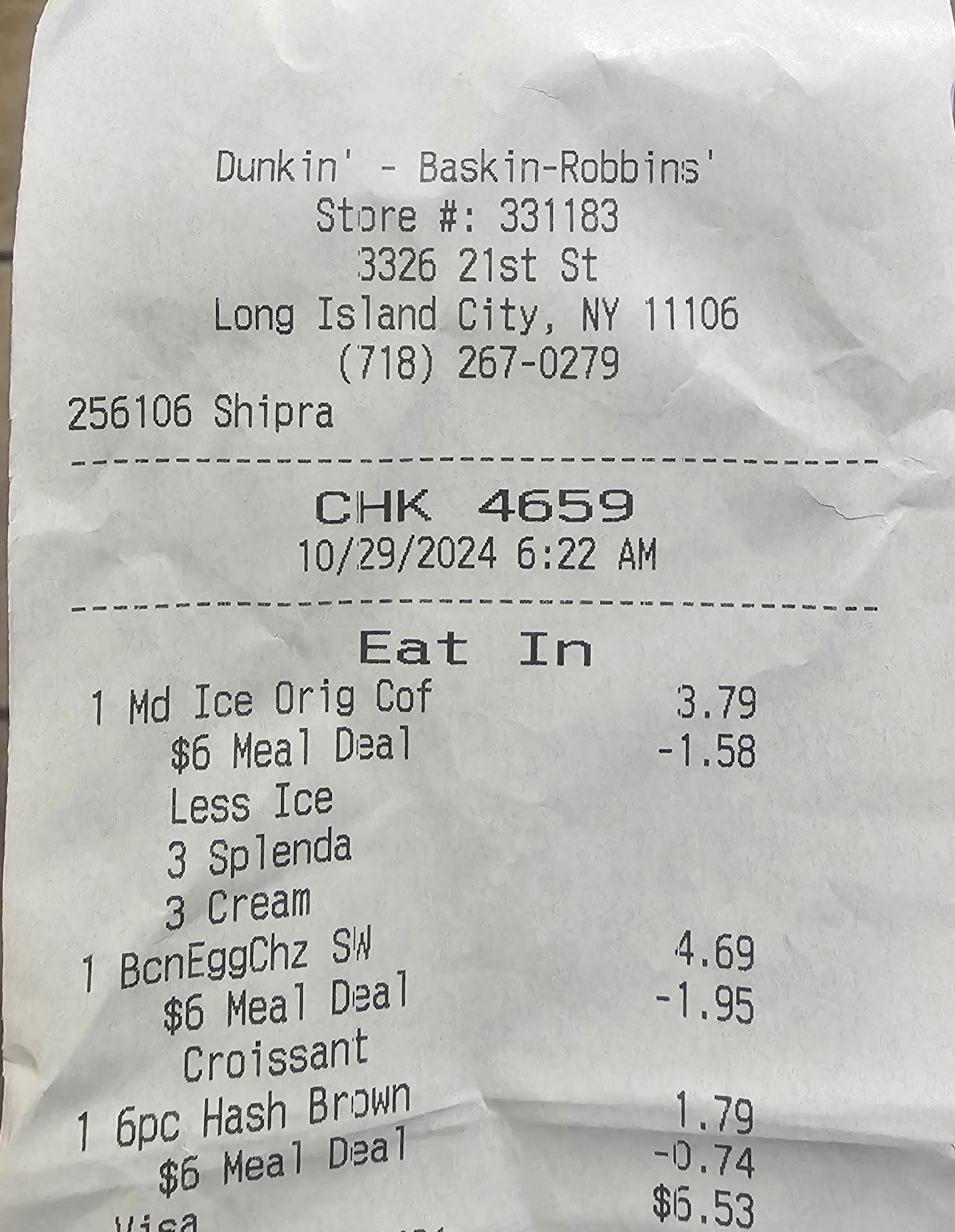 Ok I want to thank the owner of this establishment. Am completely amazed at this Dunkin Donuts, this by far IS the BEST I have seen in NY. I went at 6am, Let me start with me walking in, place was spotless, the manager with the GOOD morning Shocked Me. Everyone and I mean EVERYONE was Cooking and I mean cooking... I was so amazed that I decided to put these people to the test, I got the $5 meal. But I ordered the Bacon egg and cheese croissant, BUT I said Crispy with melted cheese, the Hash Brown very Crispy not burnt, and the Ice coffee with light ice and 3 Splenda and 3 creams.. Let me tell you These Employees hands down, Did NOT DISAPPOINT. let me just say I will be learning their names by the end of the year.. I will be coming back for sure. The meal was excellent, exactly how I wanted it.. This team is Fire 🔥 . I forgot to say this place looks like a fancy top tier coffee shop. I thought the croissant decorations where fake.. thats how crazy it looks.. I forgot to take pictures. I Never thought this place will light up my eyes NEVER.. I WAS STUFFED AND I WANTED MORE.. I never seen anything like this in NY. This place will be taking my money for a while. This is what taking your time and paying attention to detail that everyone needs. I am extremely satisfied and not just with the food but the passion these people have for their jobs. This is the Dream team of...