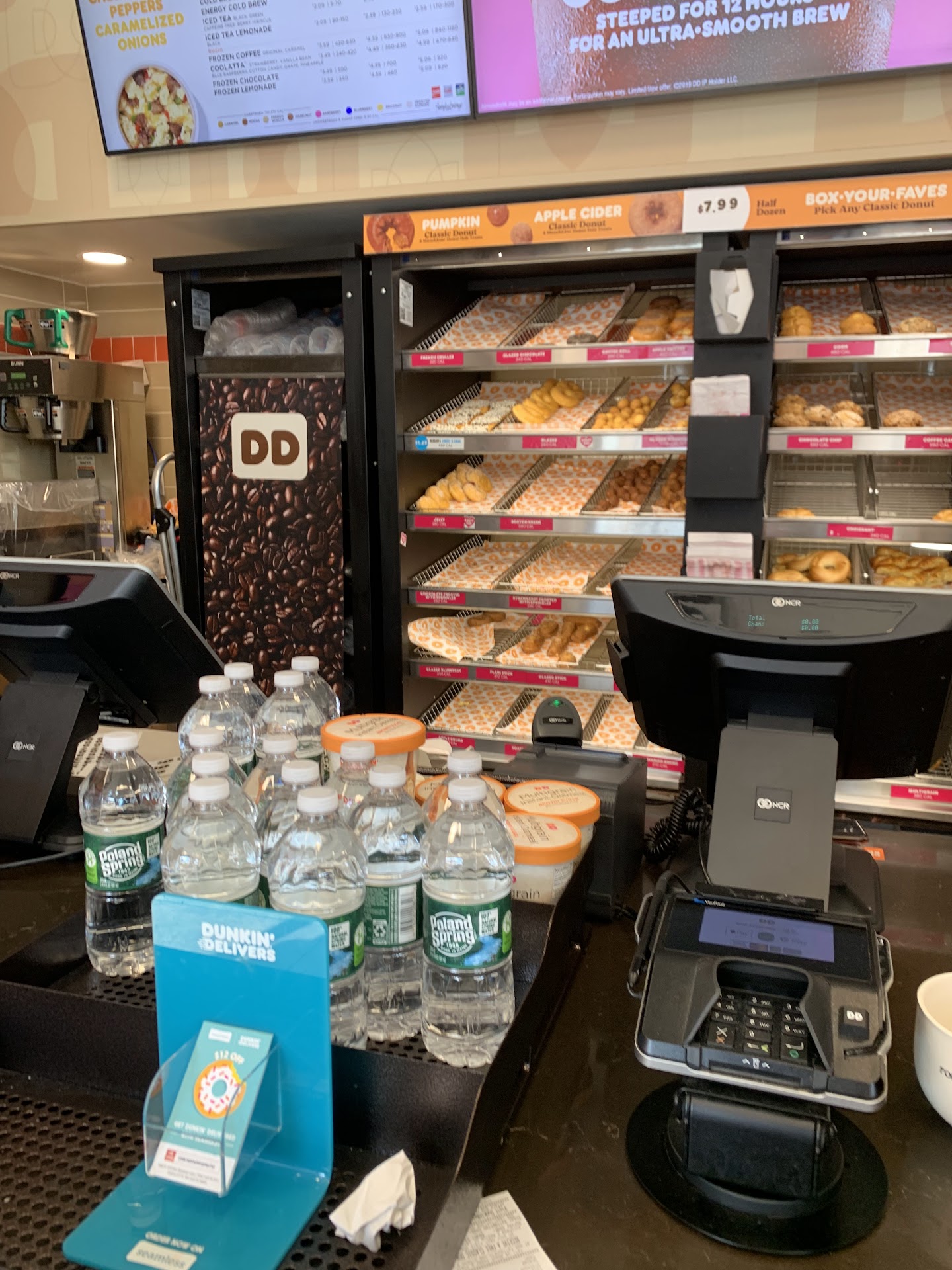 The employee needed me to repeat my order several times even though it was just 1 box of donuts and 1 box of munchkins. He loaded all the donuts into the box barehanded and then instead of giving me a separate box for the munchkins, he opens the other box and just peppers them in between the larger donuts squeezing them anywhere they could fit. He hands me the box and then asked if I wanted a plastic bag to carry it, to which I replied yes. He then proceeded to hand me the plastic bag so I could bag it up myself instead of him. I honestly thought he was joking at first.