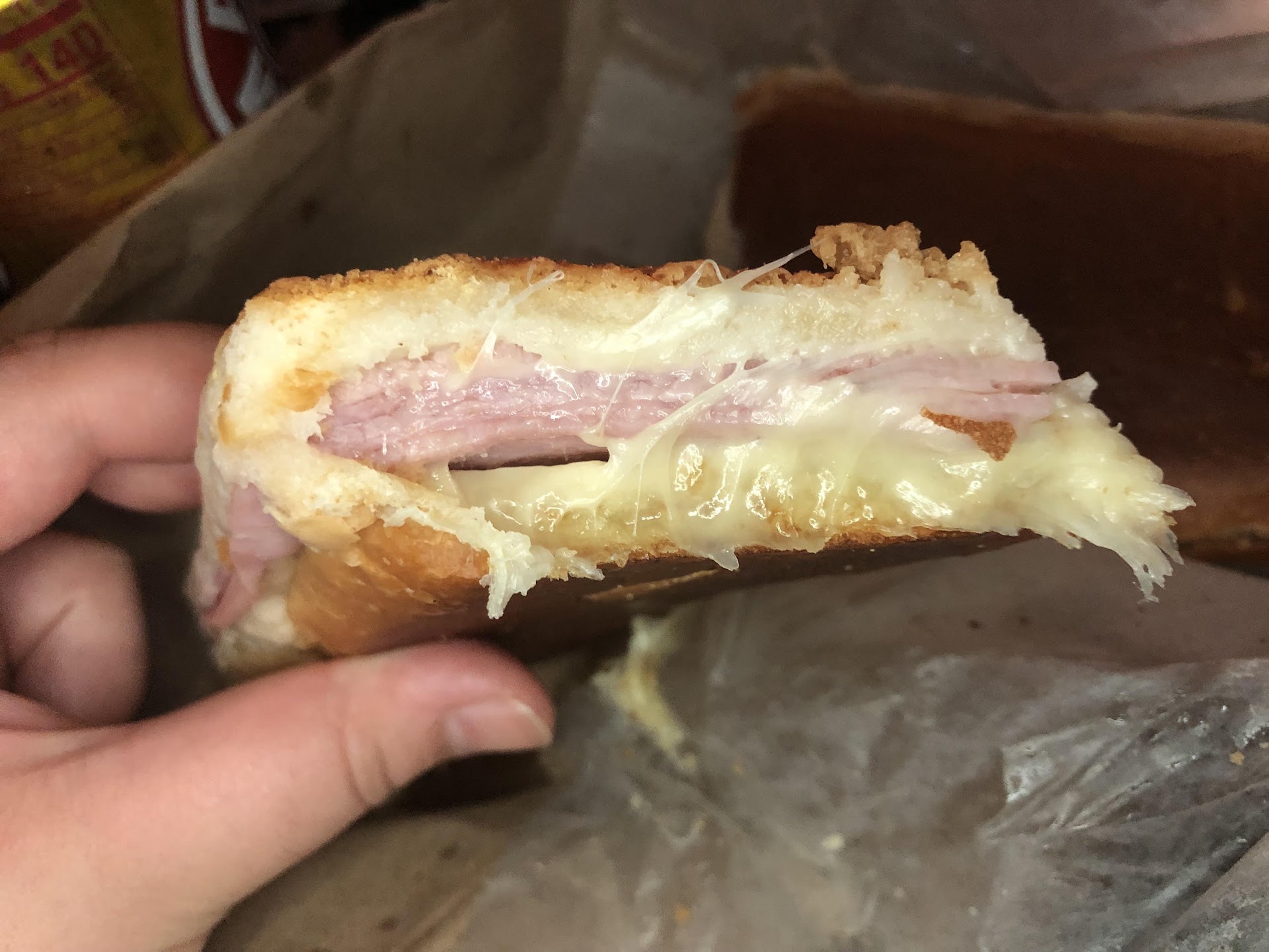 The sourdough was like eating a really oily and thin crouton, there may have been two thin slices of cheese, and the upgrade of ham was one thin deli slice of ham for either $4 or $6, I can't remember for sure. My wife had a tomato and mozzarella sandwich, similarly priced, that looked to be a little better... At least it was on a substantial piece of bread. The smallest bottle of Coke you have even seen for $6 that barely filled a small glass with ice was brought when we requested drinks, and I got the distinct feeling that we were wasting precious table space because we weren't ordering alcohol.