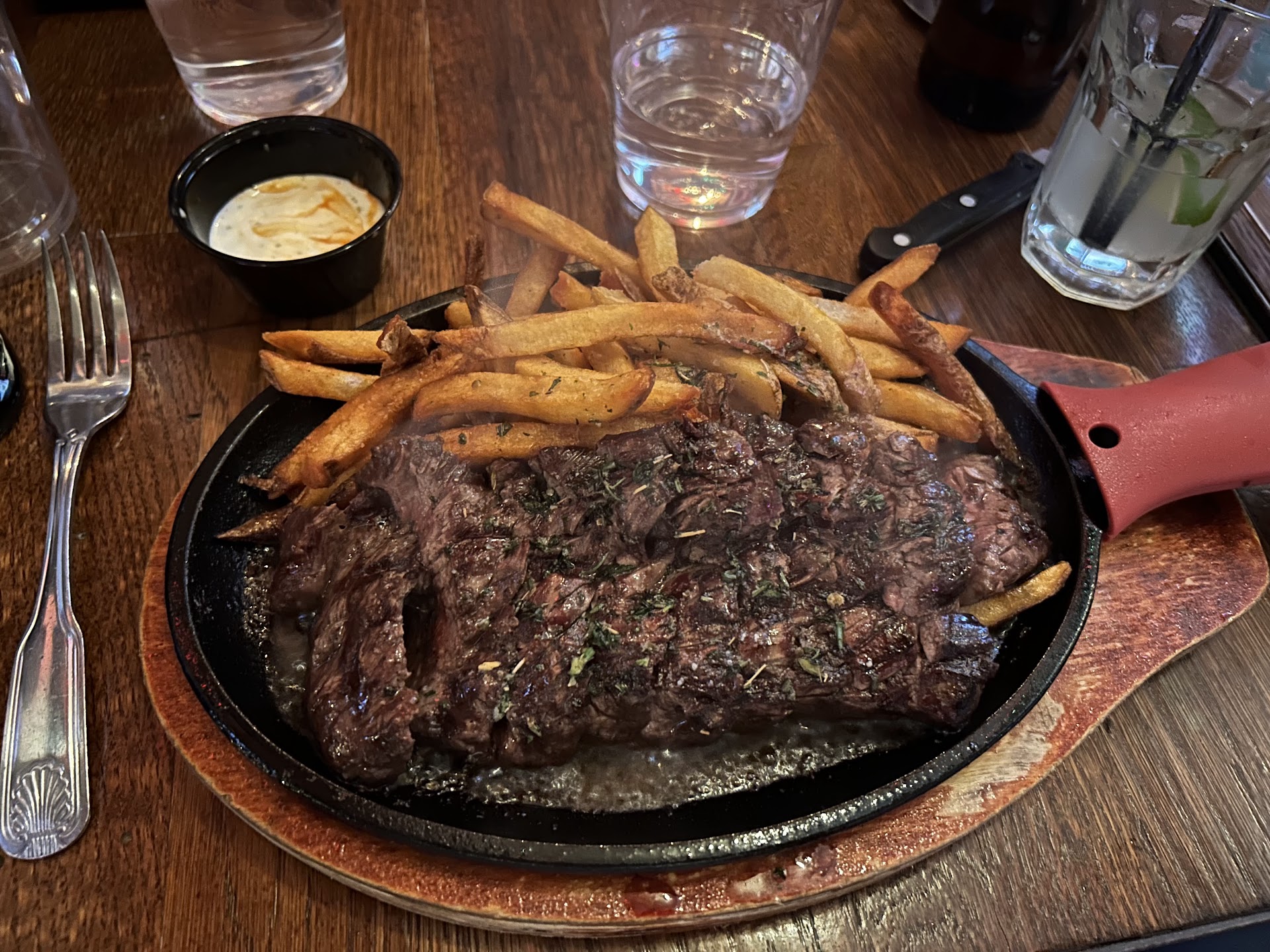 The wings and espresso martini were great . I can handle spice extremely well and this wings brought their game. The heat will calm down a little after the wing cools but is still hot . The bourbon wings were a night way to cool it down , with a sweet little bite too then . I do say though use napkins to your advantage .