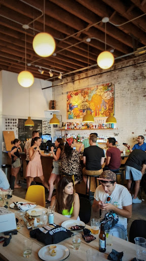 We arrived at around 5:30 pm on a Saturday and it was packed! Definitely a sign of a great brewery. The space looked like it used to be a big garage so the entrance is wide.