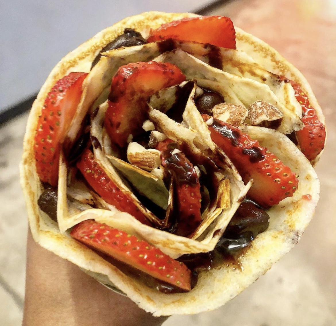 They have a variety of sweet and savory crepes to choose from, including creme brûlée crepe, Harajuku fruit crepe, and even Philly cheesesteak crepe! You’re also welcome to customize your own crepe with different fruits/proteins, drizzles and toppings.