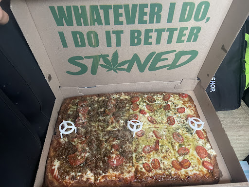 The vibe itself is like a regular pizzeria where you're able to smoke and play board games while you eat. The place isn't hazy either from the smoke, which is nice. The playlist is like 90s early 2000s rap, and it's not too loud that you can't hear the people you're with. Only down side is....its the size of a regular pizzeria lol. Maybe 5-6 tables in the place. Definitely gonna be a regular place to go.