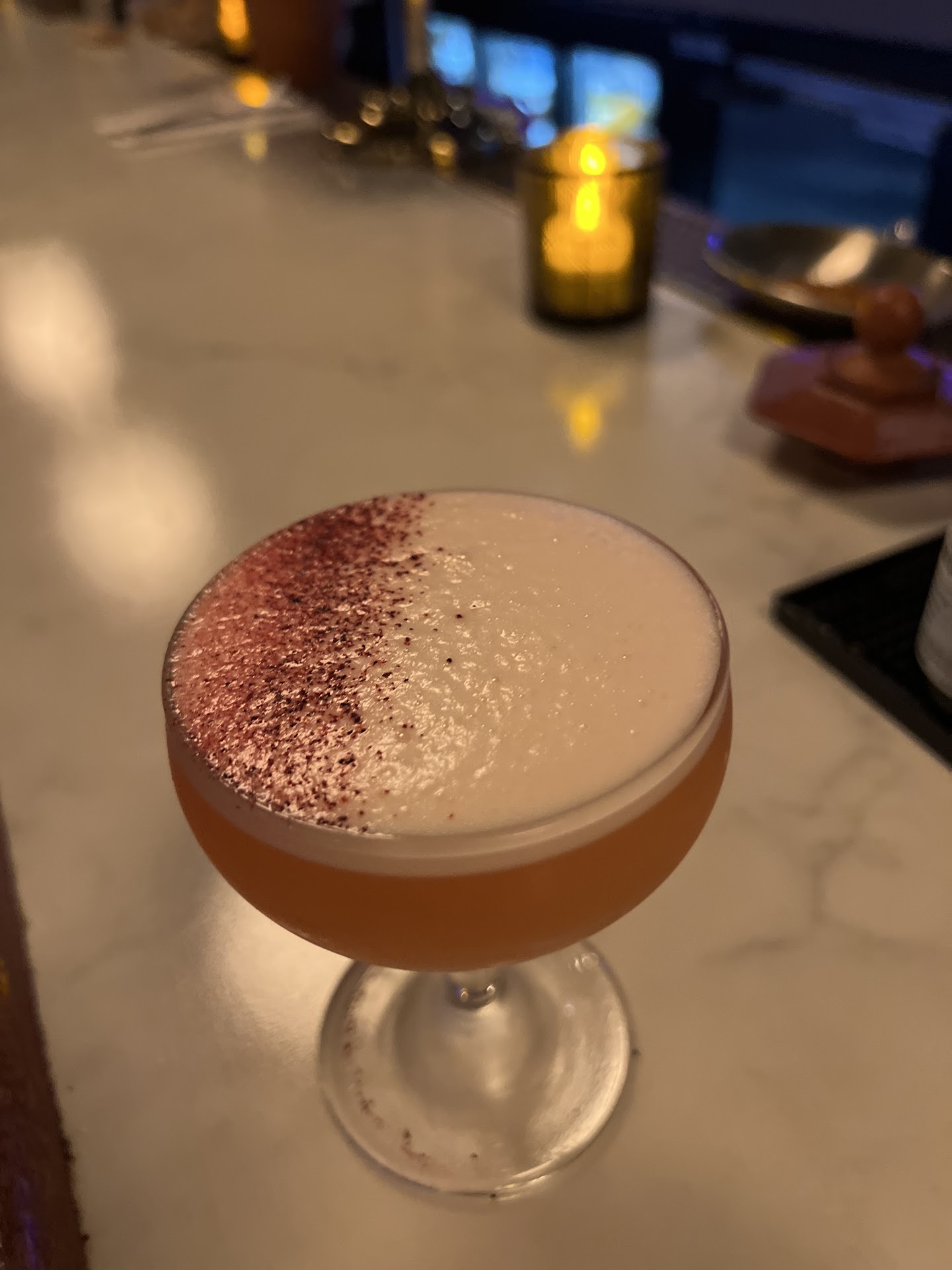 Amazing Experience! From the moment I walked in the doors, I felt welcome! I was greeted by not only the bartender but also one of the owners. The ambiance feels like you are in a speakeasy and the drinks are modern and well thought out. We had a Golden Gowanus (tart & tasty) Bad Boy (smoky & smooth) Ms Sophisticated (stunning presentation and crisp taste) and a Lychee Coconut drink that I forgot its name but I'll never forget the taste, MUST GET! The drinks were so good but I cant forget to mention the food! The fried calamari is the best I have had in a long time! It was crispy and perfectly flavored, the peppers in there added just the right amount of spice to complete the dish. The garlic parm wings are on special so go grab em while they are there, pro tip: get them well done with extra seasoning! We also got the eggplant special which was lightly fried eggplant layered with tomato and burrata and drizzled with pesto. The eggplant was firm not mushy so thats a plus but paired with the creamy burrata and the drizzled with the pesto... chefs kiss! I will definitely...