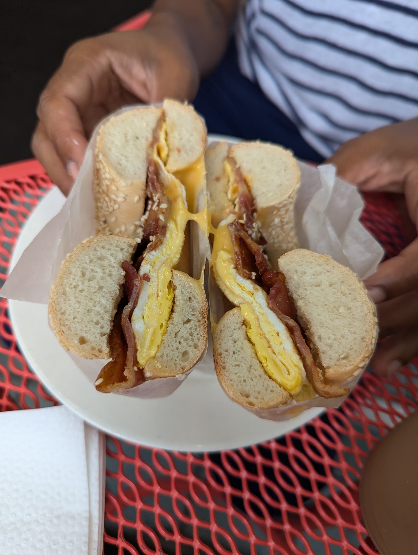 Read moreReally, really delicious coffee cake, turn overs, sticky buns, and chocolate croissants. The egg n cheese sandwich on the homemade bread roll was excellent! Great coffee. Beautiful interior paint colors are so soothing, and accentuate the old fashioned bas-relief ceiling design. The couple who own the bakery are charming. They bake everything fresh right there, and the aroma in the shop makes me long for tables and chairs to soak it up indoors/outdoors. (They said the seats are coming soon!) WONDERFUL! New favorite...