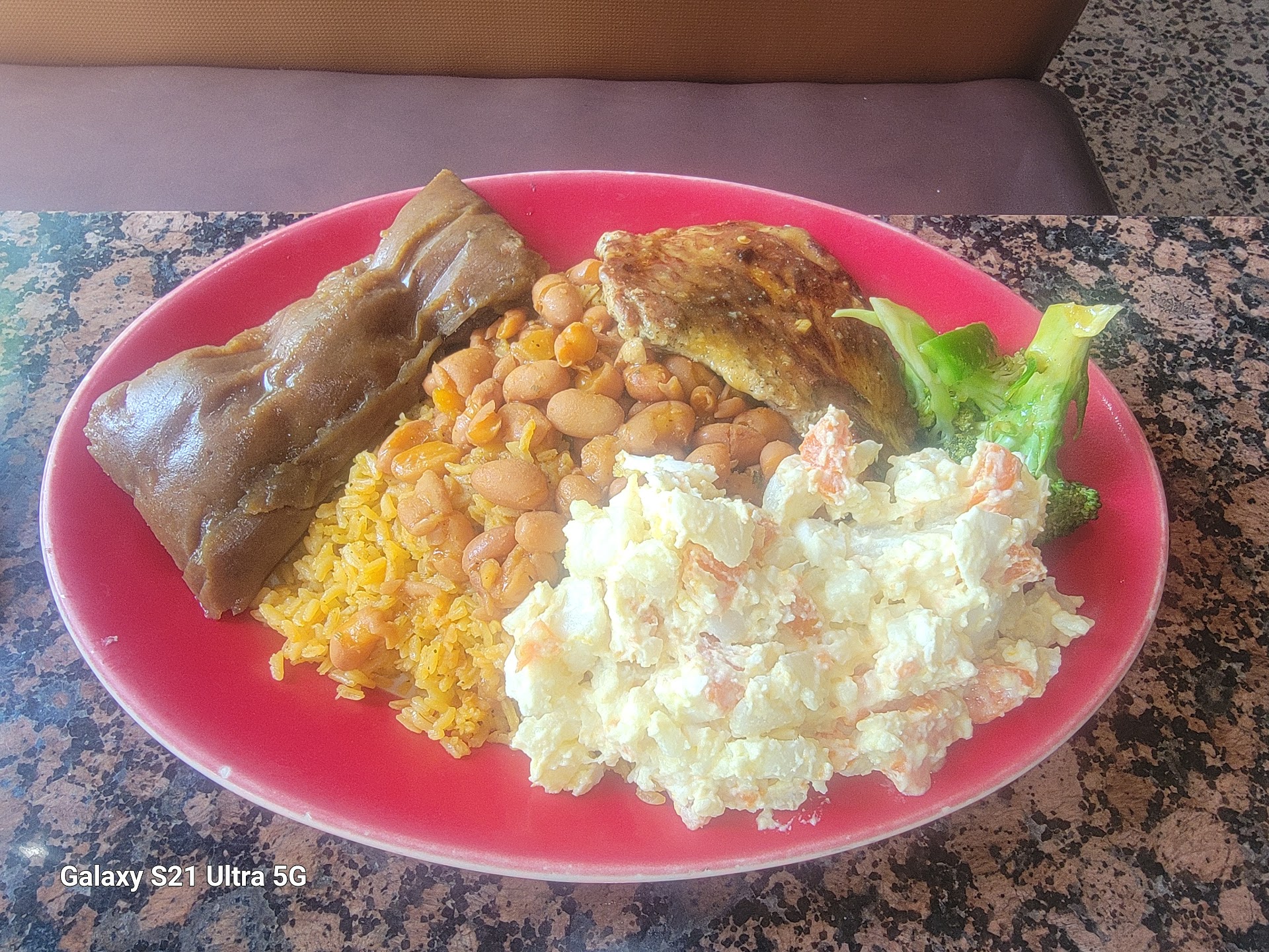Read moreIve been here a couple of times and the service is really great the ladies are always super sweet and accommodating when I come which is usually around lunch time on a weekday, mostly Fridays. I have tried the sancocho with white rice, which was ok. There wasnt an array of meats the way sancocho traditionally was prepared, and i was turned off by the small chicken wing inside the soup. While it wasnt bad it wasnt amazing just ok. Not delicious, just ok. Not everyone's sancocho is amazing so I gave them a pass. The next time I came, I tried some mangu with a side of bacon, since its a dominican spot, and the fried cheese wasnt fresh it was cold and spongy. The platano part was good but the sausage was also ok. The bacon was thin like paper, it wasnt worth paying extra for. My client ordered rice and beans, with a side of potato salad, a pastele, and some chicken with a little broccoli. He loved it but for me, again, it wasnt bad but it wasnt delicious the way dominican spots are known to be. Very subpar. Honestly I continue to pop in because my client who I usually take to lunch likes to go here so I appease him, and the ladies who work there are sweet so continue to go, but keep my order simple. The 3 stars are for the sweet ladies but other than that this place isnt really it, and thats just my...