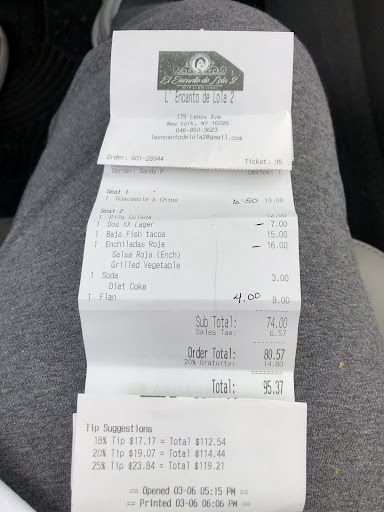 Found El Encanto de Lola pre Covid. Was stoked to return to this place. This is the third time we had dinner here. Aside from the server Luise's initial lack luster welcoming till he realized we were in the industry the place was decent. Food was okay if you prefer Americanized Mexican food. Mexican cuisine is about the add on's like the sauces, cremes, seeds and limes. You got to have a lot of lime wedges when serving Mexican food not one tiny semi dried out lime wedge for the entire meal of two diners.