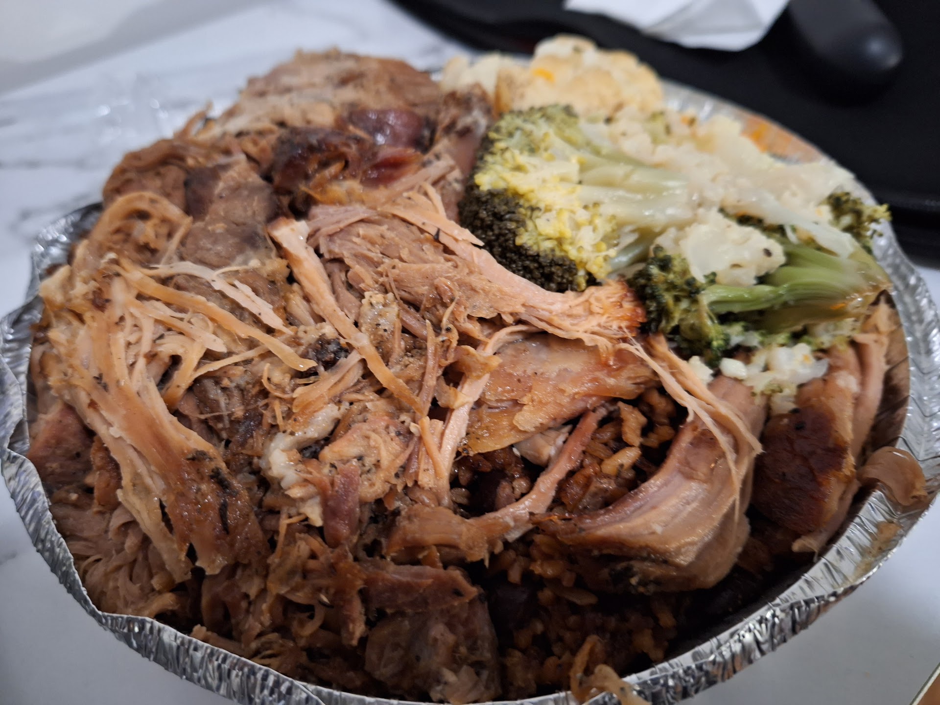 the food was just ok. none of it was great. i was disappointed in the amount of rice i got compared to the rest of the food. i received 14oz of food when i weighed it, and about 3/4 of that weight was rice. i ended up throwing away half the rice. the chicken looked like it had been sitting all day. the best part of the meal were the plantains.