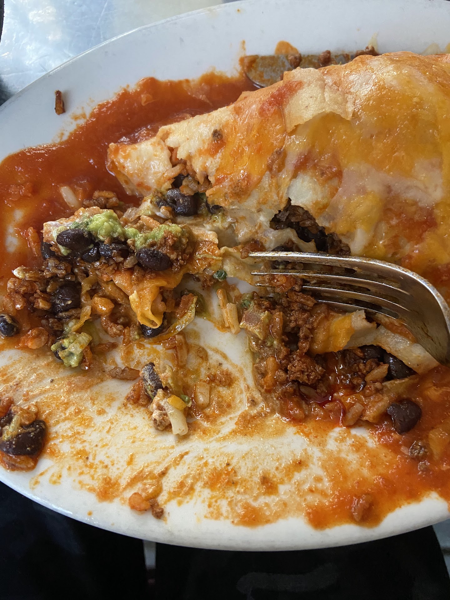One of my friends who's a vegan unwrapped her burrito mid-dining and discovered a piece of meat. She brought it to his attention to be taken out of the bill and she refused to eat anything else. He told her that she should've stopped eating from the first place (burrito was wrapped?). And when she felt very uncomfortable, upset and couldn't look at his face while stating her case, he told her to look him in the face while talking to him.