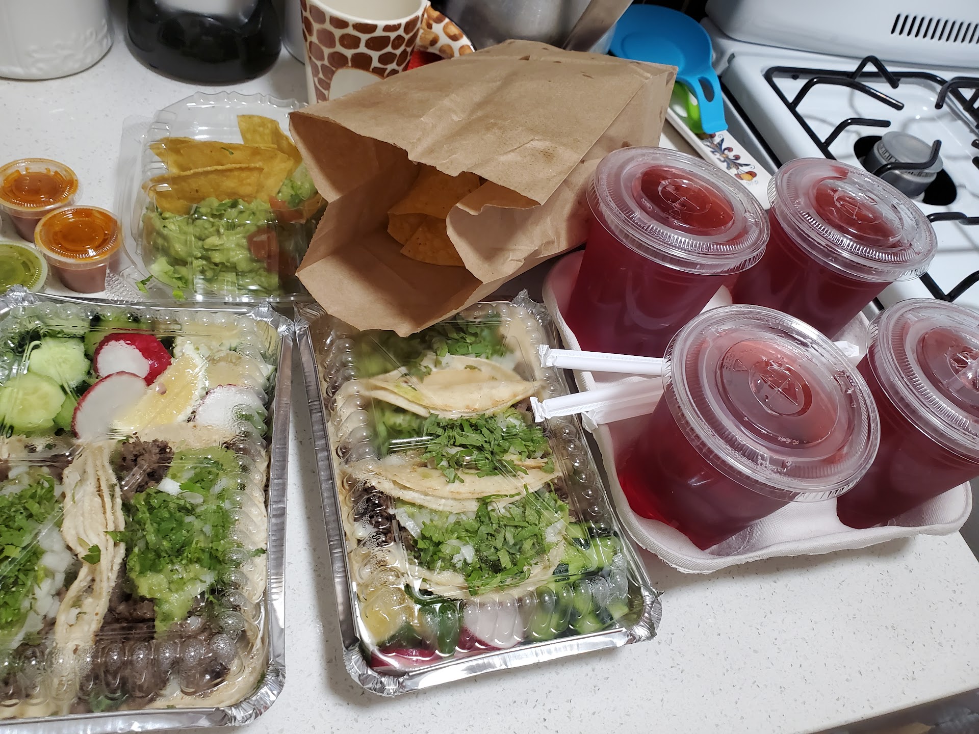 Read moreThe chips with guacamole is absolutely delicious! The chip has the perfect consistency and flavor, it's not greasy or salty it's perfect. The tacos are big and delicious, they come with the meat you'd like and cilantro,onions and guacamole. The steak is seasoned very well and the grilled chicken is amazing. The agua de Jamaica are great, it's not overpowering or super sweet it's just right. I'm hooked on this food and have ordered consistently. It's semi pricy with $4.50 per taco but you're getting your money's worth. The taco is full of meat and it's just delicious. Glad there's a Mexican restaurant around...