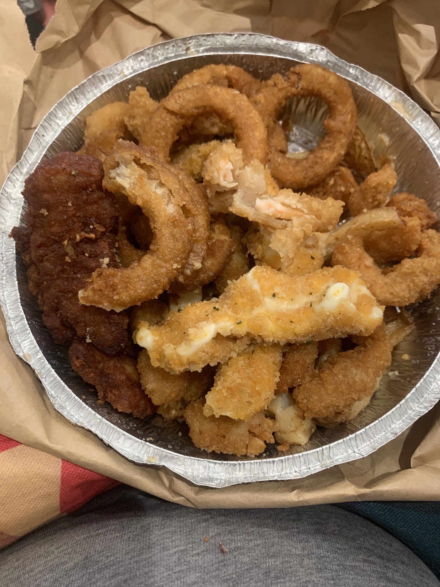 Read moreI am basing the stars/review on this order placed tonight. Typically their food is alright but tonight it definitely was not. I wish I could get a refund but who knows how that would go. I decided to take a risk and get there sampler which brings onions rings, mozzarella sticks, buffalo wings, french fries, fried baby shrimp and chicken tenders. All of that for only 13 bux sounds great right? Well it was horrible, not sure how long they have these in their freezer and took out to make today. I only had 2 pieces of “buffalo wings” but there was no flavor of buffalo at all, no sauce nothing. The mozzarella stick looked really as you can see is gross as well. Onion rings are scary looking. I also ordered Caldo de Res and it was subpar, basically make it at home if you plan on using this recipe; celery sticks, a sliver of carrot, chopped up beef, and garnish with onion, cilantro and limes. Sucks i won’t be eating this sampler!! DO NOT ORDER...