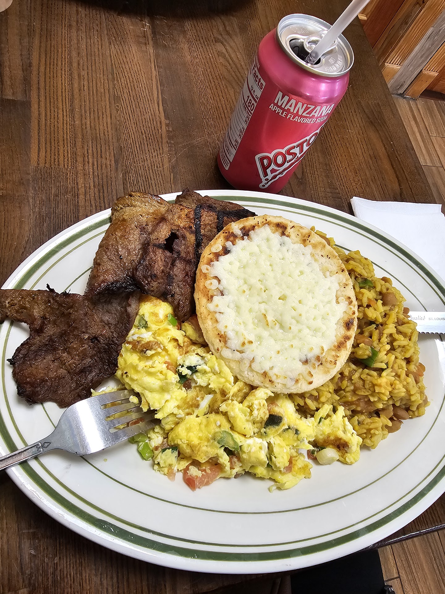Ordered a breakfast with scrambled eggs, I specifically told the waitress to cook them soft, and they came out toasted đ€ŠđŒââïž. Asked for no âcalentadoâ (rice and beans mixed) and they served me a chicharron, which was basically just grease. There are better chicharrons at other colombian bakeries that are meaty. The arepa was actually decent. The steak missed on the flavor and again, you can have a much better grilled steak like âBrisas Latinasâ about the only good thing ai can say is that itâs pretty cheap to eat here.