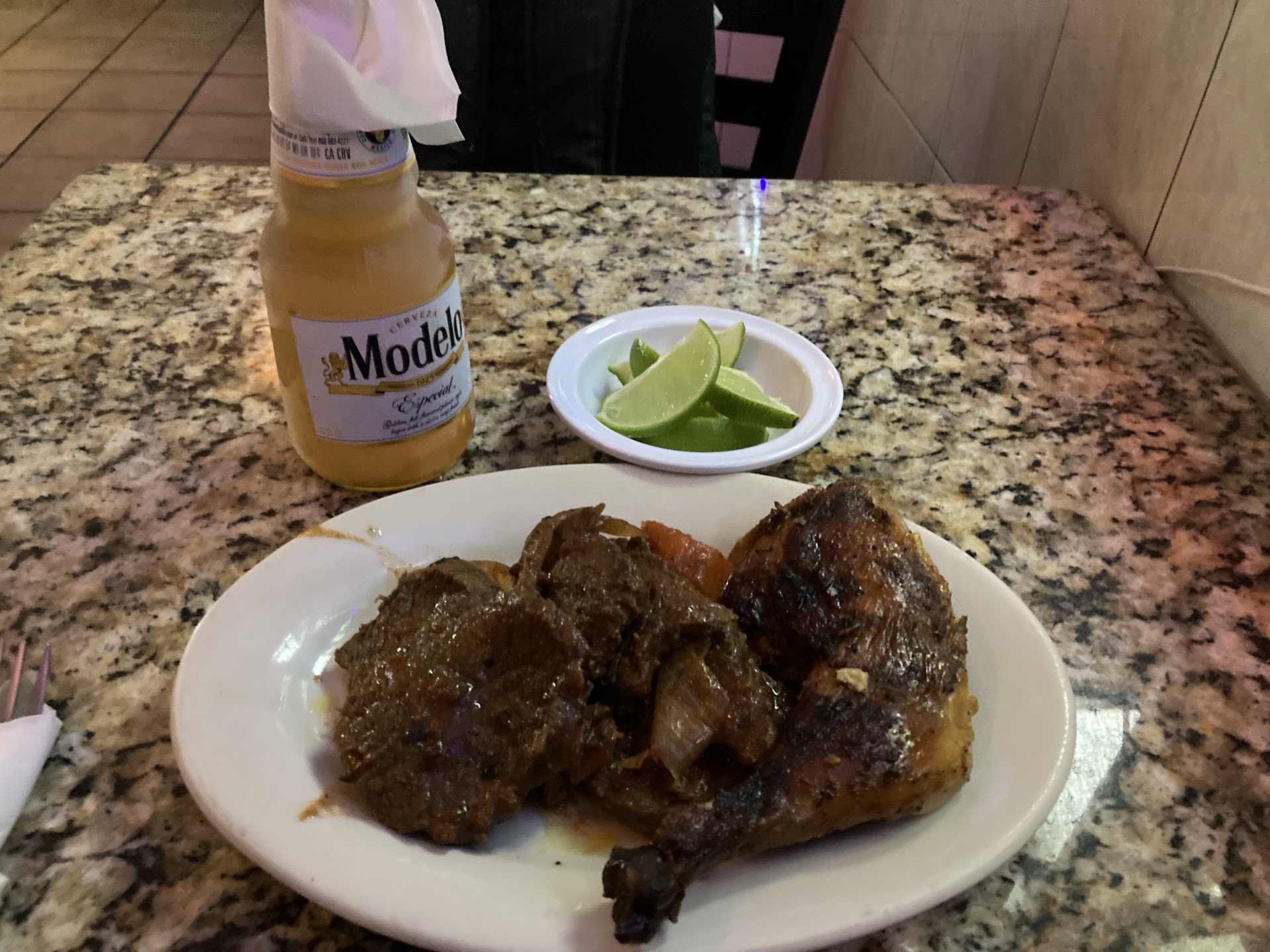 Needed to find a spot kill some time unexpectedly. It seems the cuisine is Dominican. Host/bartender was exceptionally nice and showed me all the prepared food in a covered warmer. I got two pieces of chicken and a small portion of beef stew. Both were delicious but the chicken was much more tender. Big selling point was the 27 degree ICE cold beer cooler. Both modelos had a bit of ice and were entirely frosted over. They were served with plenty of limes. Wanted to order more but had too little room and time. So glad to enjoy authentic and homey places like this. It was cash only but the atm fee was only $1.75. My small meal and two beers was $20. There’s outdoor and indoor seating. Open till 12pm on weekdays. The chef was still there at 9pm to prepare individual dinners but all the prepared food...