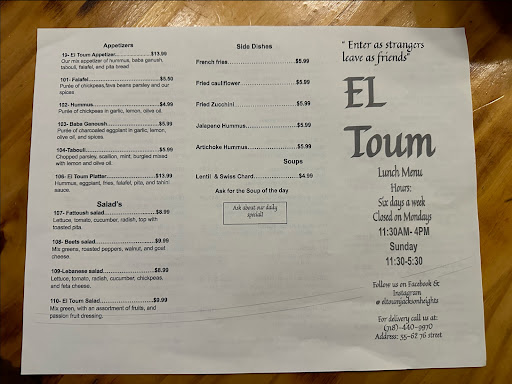 I had tried El Toum a few times shortly after they opened and wasn’t impressed — the food wasn’t good and the interior felt a bit grimey. I never understood all the rave reviews this place seemed to get. Since I live down the block and the restaurant is always bustling (and constantly written up by sites like Gothamist and Eater), I decided to give it another try.
