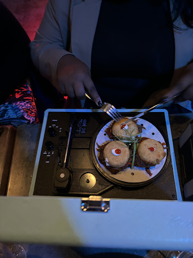 The food final came and my mashed potatoes were so cold. I had to send them back. My dish came out on a literally record player, which I knew, but he couldn’t even get it to work fully. The arepitas were actually decent. The potatoes were subpar even when they brought them back. It tasted like frozen mashed potatoes heated up. My friend food had a piece of grilled chicken breast with some rice and beans. If this is a Latinx inspired dish, why would that type of chicken of chicken be acceptable. The fried rice wasn’t even fried. It was just white rice with some meat on time. There was no sauce. A friend had to request some. The birthday girl didn’t want hers because it was not good. The waiter said that he will take it back and make her a pasta dish and take care of it. She didn’t even want that.