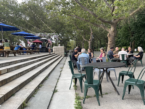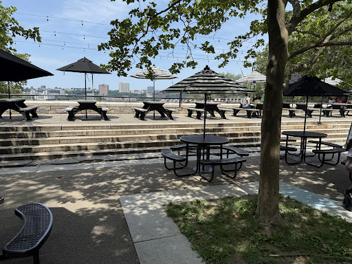 Read moreHere, you really are mostly just paying for the environment and atmosphere. Came here for the first time with a pal to watch the sunset and grab a beer. There were a lot of people, but finding a spot to sit was surprisingly easy on a beautiful Friday evening. The environment is gorgeous: they had cool lights, lively music, families with kids running around and looking happy, and groups of people sitting around and chatting. From our seat we watched people working out in the park and of course enjoyed the beautiful sunset on the Hudson.