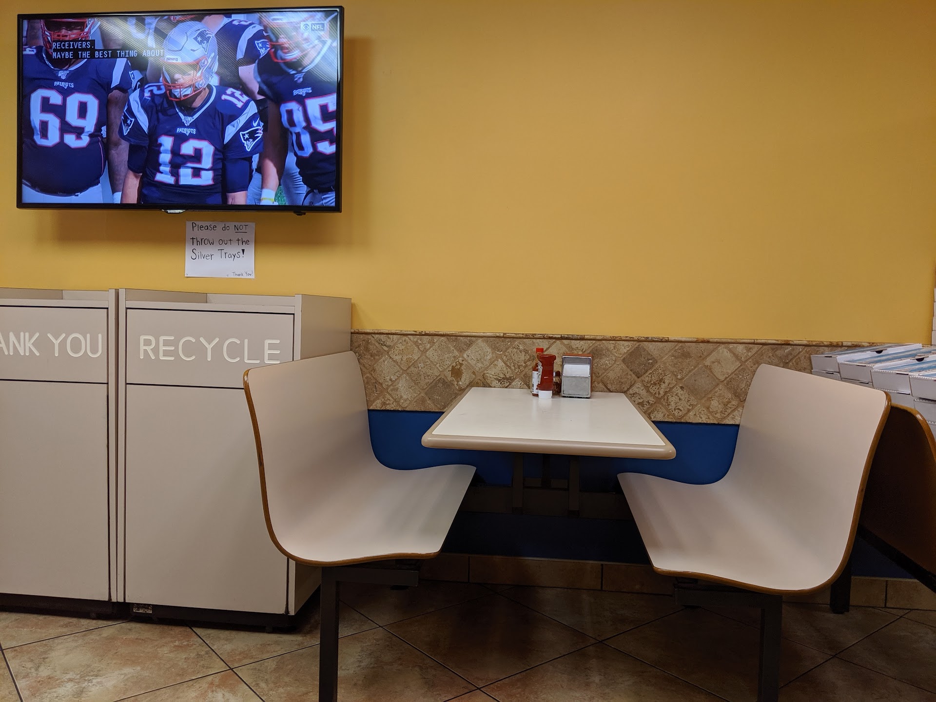 Read moreI give this place like a 5/10, and only cause the guy was nice. Walked in and didn’t get what I wanted. I asked if I can use the bathroom anyway and he said yes. I decided to later buy a personal pie, as they don’t do slices. Honestly, it could have been better. The dough was a bit soft and the sauce had a bitter aftertaste to it. The cheese kind of felt ok. I agree with a previous review that it tastes a bit like frozen pizza. Maybe give this one a pass. Or maybe a topping one might be better. Feel bad, as I really...