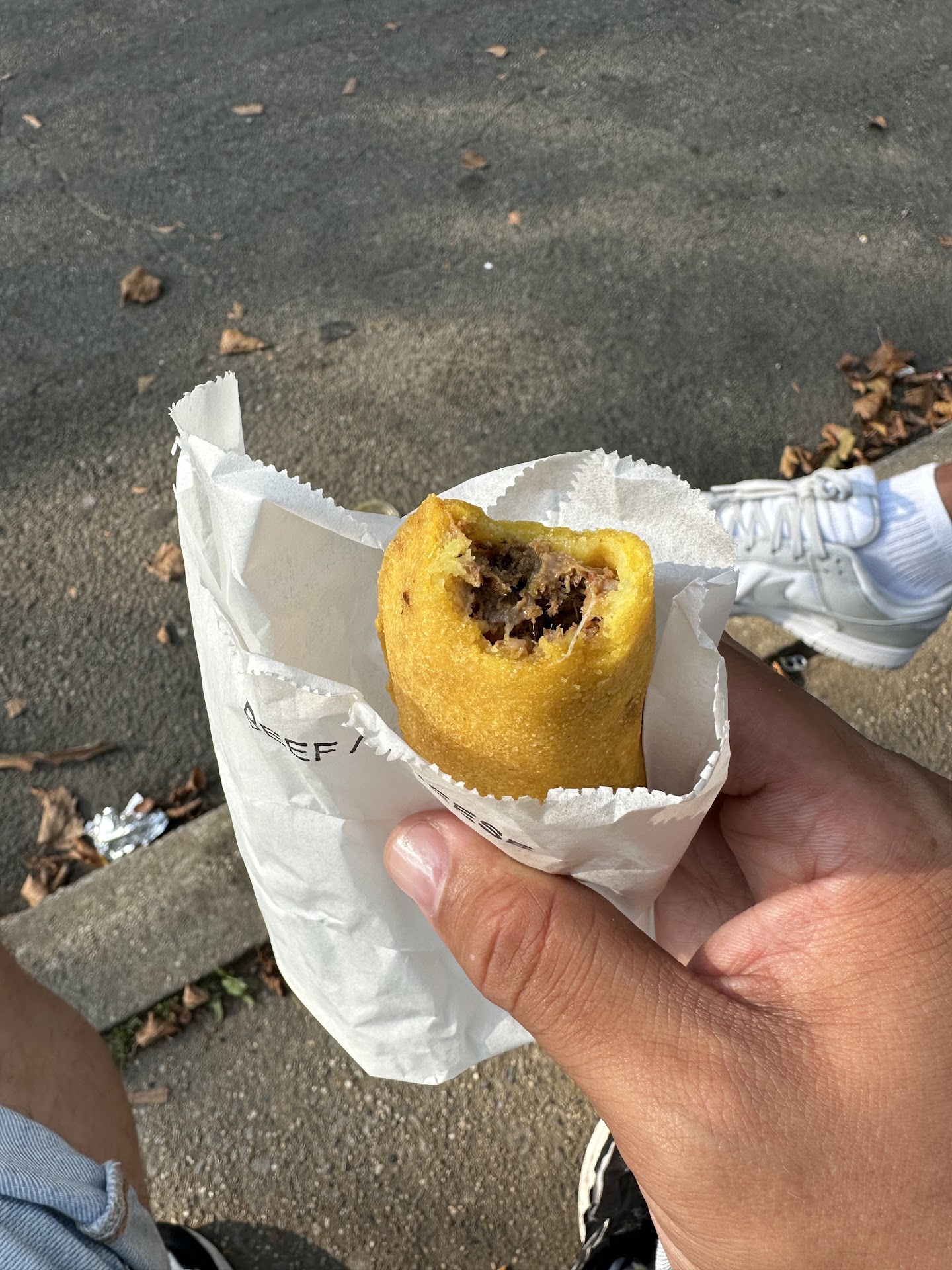 I did like the hole in the wall in the middle of nowhere vibe, yet we got the beef and potatoes empanada made of corn flour, the beef empanada made of white flour, and the dessert banana Nutella empanada. The two savory ones were very dry.