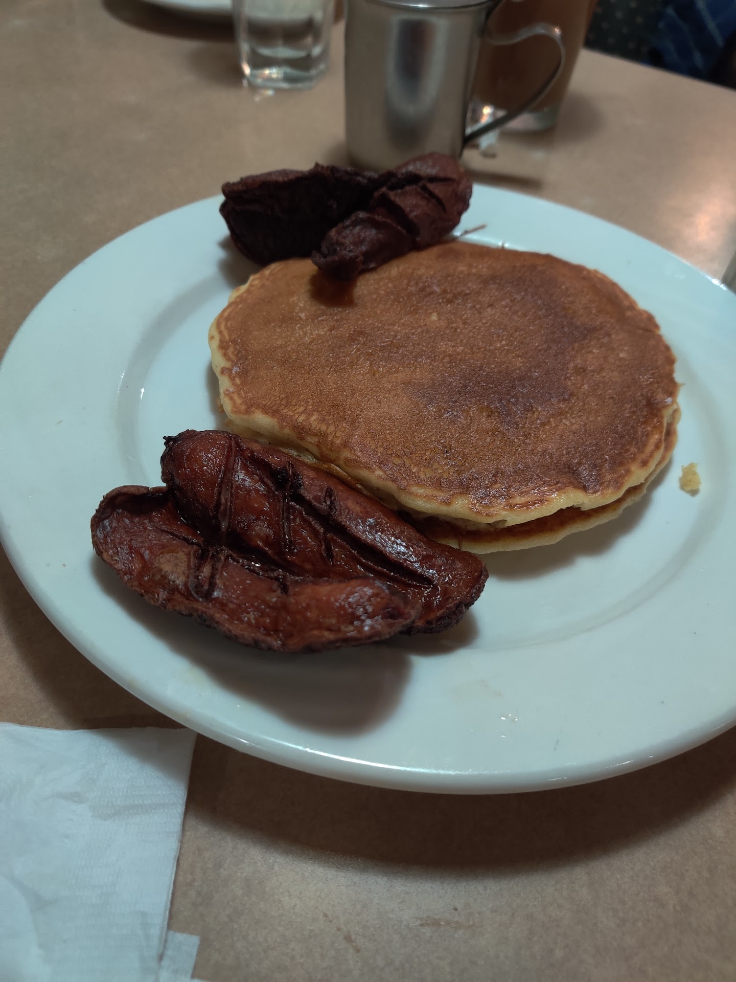 The first thing he did ask was: “something to drink?” And in my mind I’m like maybe he should ask if this is my first time? See if I know how the menu works? But I digress. This is how they get you though. They ask what you want to drink. So that it’s not included in your breakfast special. Because if you ask that first, than when the customer ask for a special. they just ignore it and won’t even tell you “the special comes with a drink”