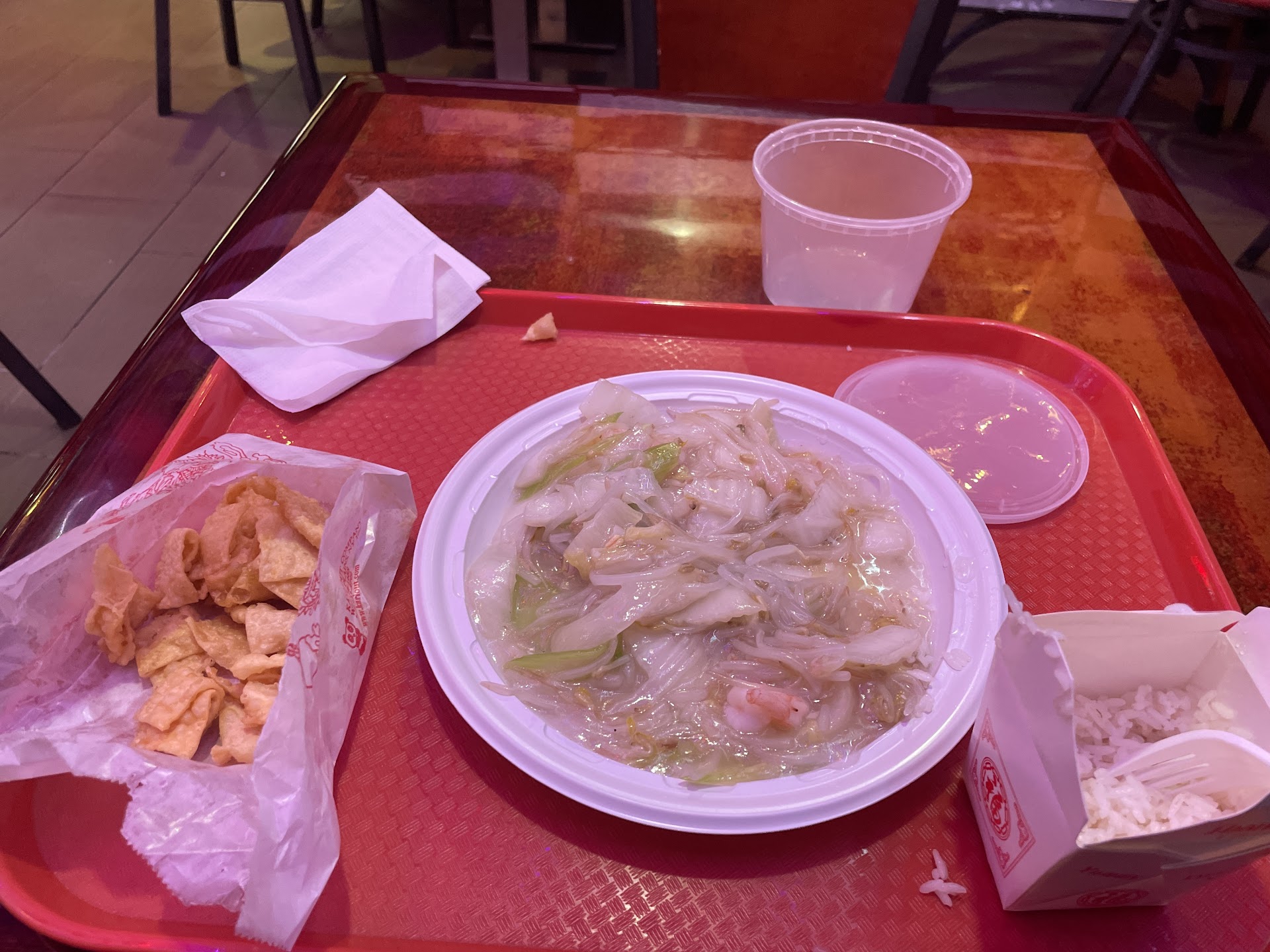 When I ordered the Chow Main Shrimp and a tea, pay and wait patiently. When the girl at the front desk gaved me or receive the plate, for my surprise that looks like something else. For me it does looks like lobster sauce or something, plate looks slammy/sloppy and not apetizing and they didnt gaved me the tea that I request it.