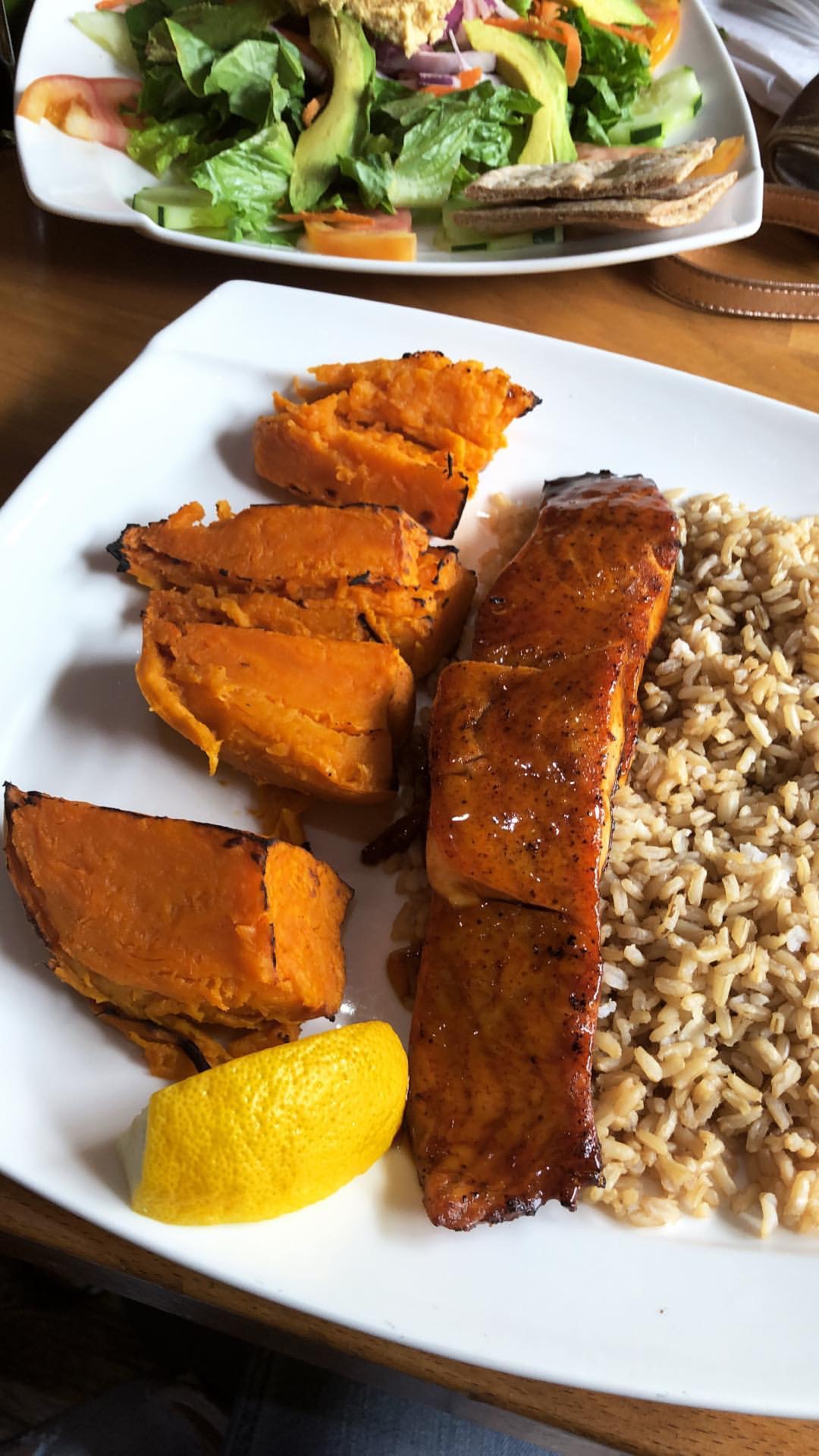 You can choose from the menu or create your own plate. I created my own, and had the salmon platter with sweet potatoes and brown rice. The portion was huge. The salmon was nicely done, crisp edge but perfectly cooked. It was savory as well, and the sweet potatoes were delicious. I enjoyed every bite.