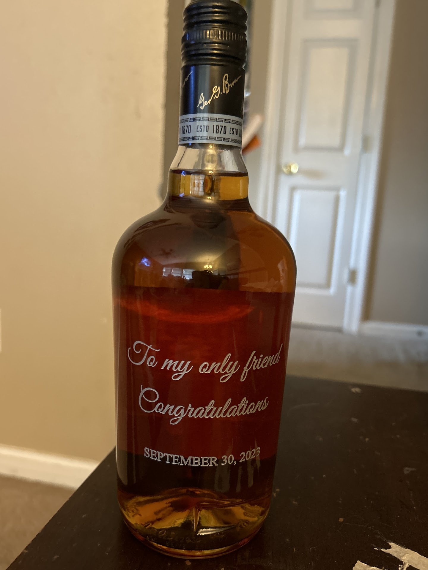 Read moreNot too happy with this bottle. This is my 3rd engraved bottle and the other two were great. This one though came out looking cheap. I'm debating whether to even give this to my friend. The actual engraving is great as usual, it's the "label" of a photo that I uploaded. It's just a copy of the photo that's pasted on the back of the bottle. The worst part is that the label looks like a bad photocopy and looks crooked. I thought the photo would be engraved and not a photocopy. The photos on my other two bottles were actually engraved and came out perfect. For the price I expected more. UPDATE: I added another star!!! Literally just received a message from Dmitry of Engrave My Wine (8am on Saturday morning)!!! They want to make things right. The problem is that the issues are relatively minor. There was an issue with the back label being a little crooked and the photo label looking a little blurry. But overall, the bottle (along with the 2 glasses and the box) are excellent and any minor issues will be overshadowed by the rest of the products and the complete package as a whole. The fact that Dmitry reached out to me and made such an effort to make me happy says a hell of a lot about this company and their standards for excellence. I will keep the products that I have and will gift them proudly because I know they come from a company that cares as much as I do about what they do and...