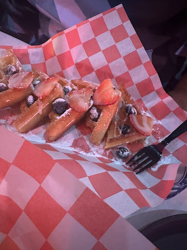 The standout dish, for me, has to be their fried shrimp basket. Bursting with flavor, it's a delightful medley of shrimp, mussels, calamari, chicken wings, waffles and perfectly cooked fried Salmon. Pair it with home style waffles, chilled glass of dusko blu Riesling wine, and you're in culinary heaven.