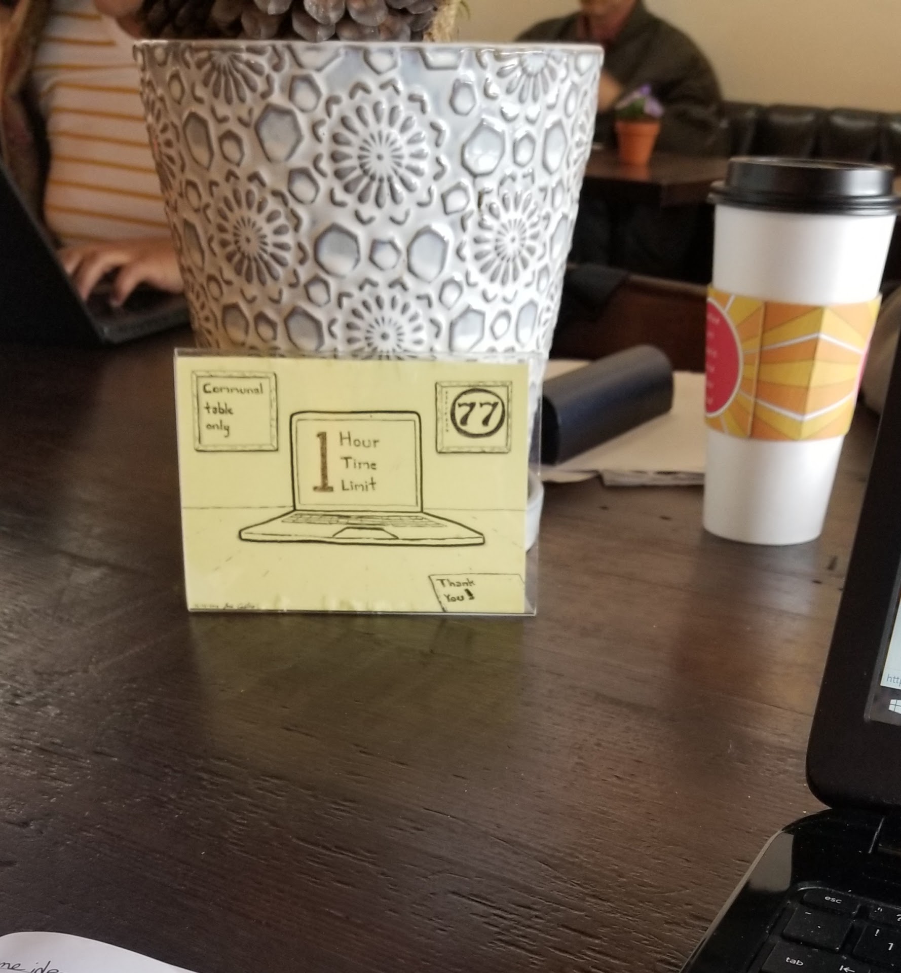Now, I understand and mostly agree with the laptop policy. Cafes full of screens are a bad vibe and I respect it if you don't want to create that atmosphere. I even understand and respect the general seating time limit of 45 min. To a point. I know you want others to be able to come and get food at your business and not be turned away constantly because of campers. But cafes are also a place to relax and the way the seating limit is so aggressively, intensely policed by management is absurd, and quite frankly, puzzling.
