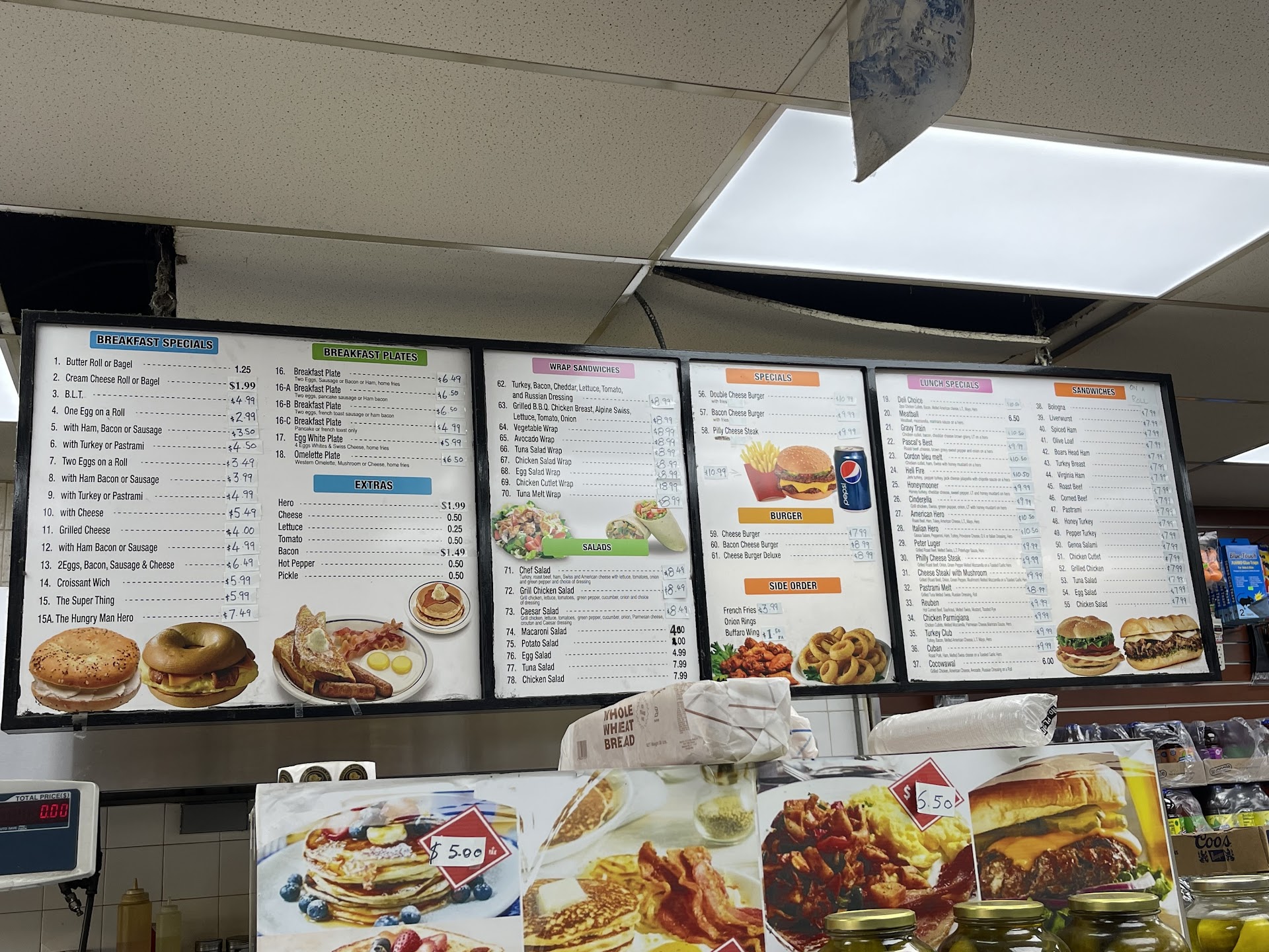 They get 3 stars not for the food taste, but for the straight up lying on their menu. On the picture i provided is a current picture of their menu that’s hanging instore. As you can see a two eggs on a roll, with bacon, with cheese should come out to 5.50. After asking the cool behind the counter he said. “Nah man all sandwiches come with one egg”, even after i pointed out what the menu said, all he could do was shrug his shoulders. Just figured yall should know what you walkin into. (I ended up paying the 75cents for an extra egg to have the atleast two egg sandwich i wanted) After further talking with the guy behind the counter again he said i was right but then referred me to their menu at the counter and some what’s disregarded what i already said. Attached is the menu at the...