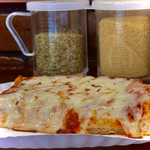 i opted for a plain square / Sicilian slice and it outperformed my expectations. the cheese was oozing and super melty (definitely NOT the cheap fake-o cheese). the sauce is rich and flavorful—not too sweet or salty. the square’s crust is nice crunchy and crisp on the bottoms and firm chew on top. the square is a classic and delicious—really does not need toppings. it’s $4.50 + tax + tip.