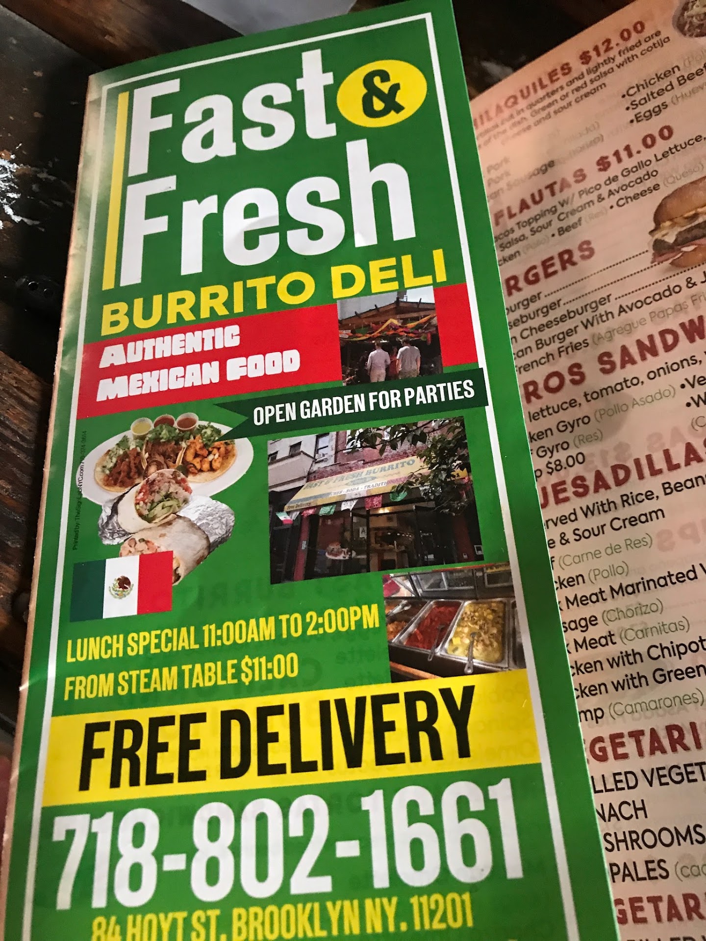 Read moreExcellent. Great find. Fast free delivery thru an app I don't know. (So Tip the guy well!) From 100 miles away I saved my Wife this morning when she sounded bad at work and needed, really needed, a breakfast burrito. But she said no place near her in downtown Brooklyn had one. Within 10 minutes I found Fast & Fresh Burrito (google maps) and ordered exactly what she wanted. At a very fair price! Delivered to Dean St in 38 min, (uncannily the eta of 11:23 was exact). She LOVED it. "Delicious" was her entire review which is extremely high praise from her lol. I expect she will have the same at least a couple of times a week...